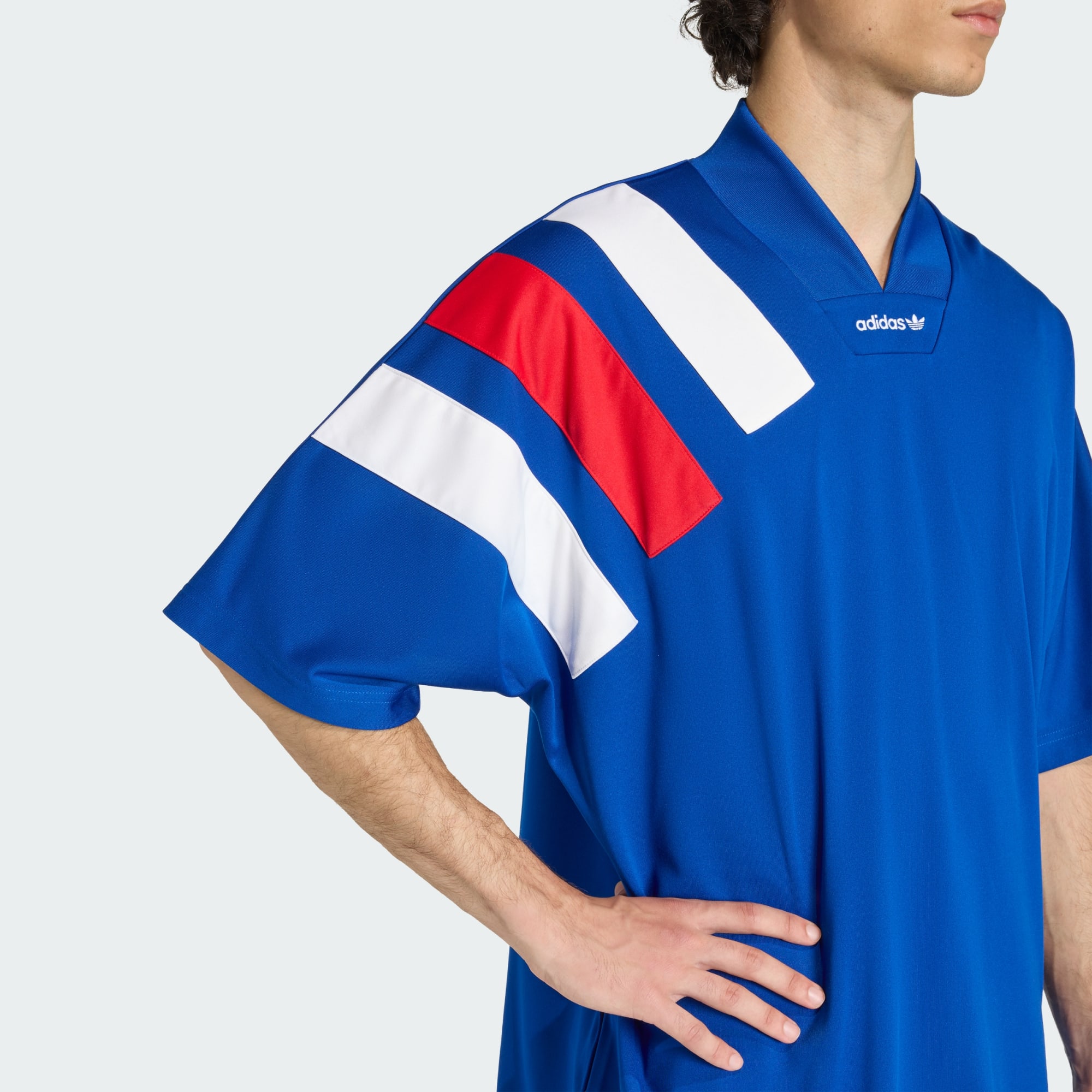 Adicolor Blocked-tröjan kombinerar en klassisk design med nutida komfort. Den här kortärmade tröjan från adidas är inte bara ett mångsidigt basplagg. Den är ett modestatement. Tröjan har en oversize-passform för en lös och ledig silhuett. Det slitstarka interlock-tyget känns mjukt och skönt mot huden. En distinkt krage och 3-Stripes som löper diagonalt över axeln ger tröjan en alldeles unik look som garanterat kommer att dra blickarna åt sig. Den här tröjan har designats med inspiration från 90-tals fotbollsmode och passar lika bra när du slappar hemma i soffan, som när du tar en sväng på stan.