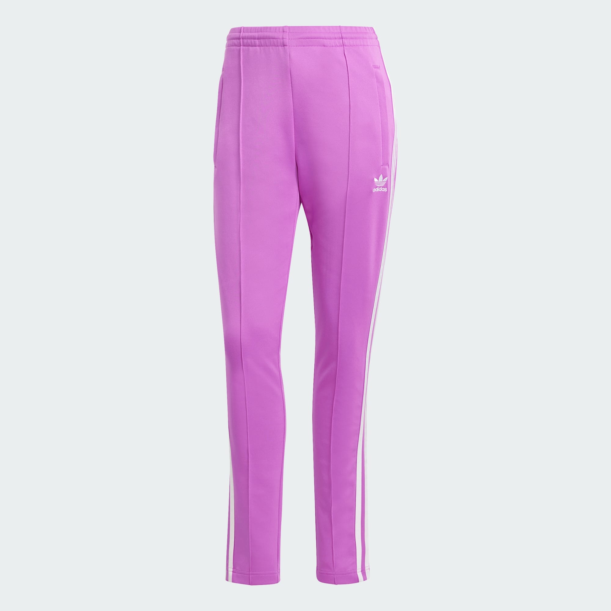 Gör dig bekväm i dessa trackpants från adidas. Den smala passformen ger en stilren känsla och den stretchiga dubbelstickningen ger dig rörelsefrihet. Långa 3-Stripes längs benen ger en sportig look. Kombinera med en matchande trackjacket och en kontrasterande croppad topp så är du redo för dagen – oavsett vad du har planerat. Minst 70 % av den här produkten är en blandning av återvunna och förnybara material.