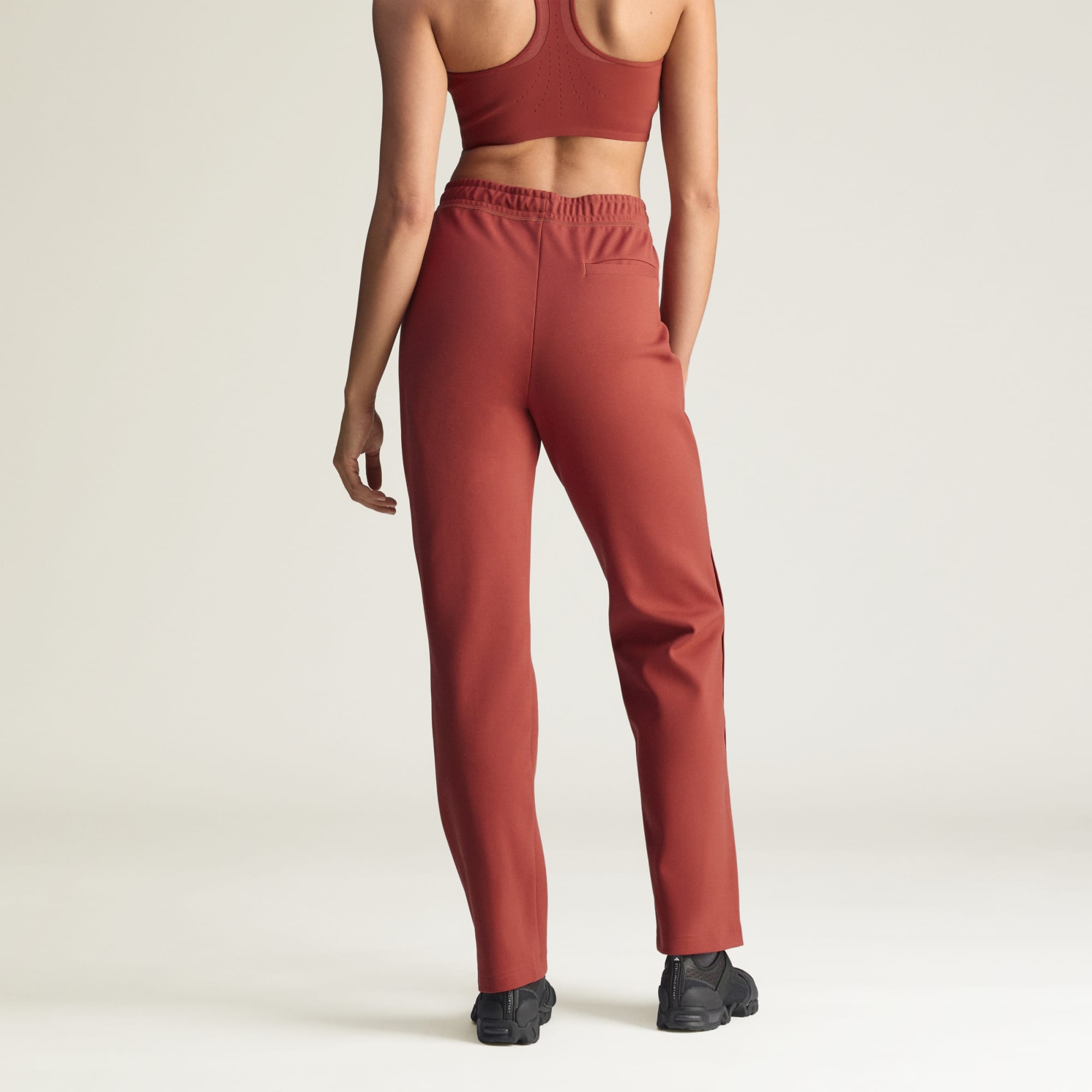 De här avslappnade träningsbyxorna från adidas by Stella McCartney lyfter både stilen och komforten. De har en normal passform men dragkedjorna i sidorna som låter dig leka med formen. Det stickade materialet känns skönt mot huden och det tåliga, vattenavvisande materialet ser till att vätan håller sig där den ska – ute. Den här produkten är gjord med 100 % återvunnet material. Genom att återanvända material som redan skapats bidrar vi till att minska avfall, minska vårt beroende av ändliga resurser och minska våra produkters miljöavtryck.