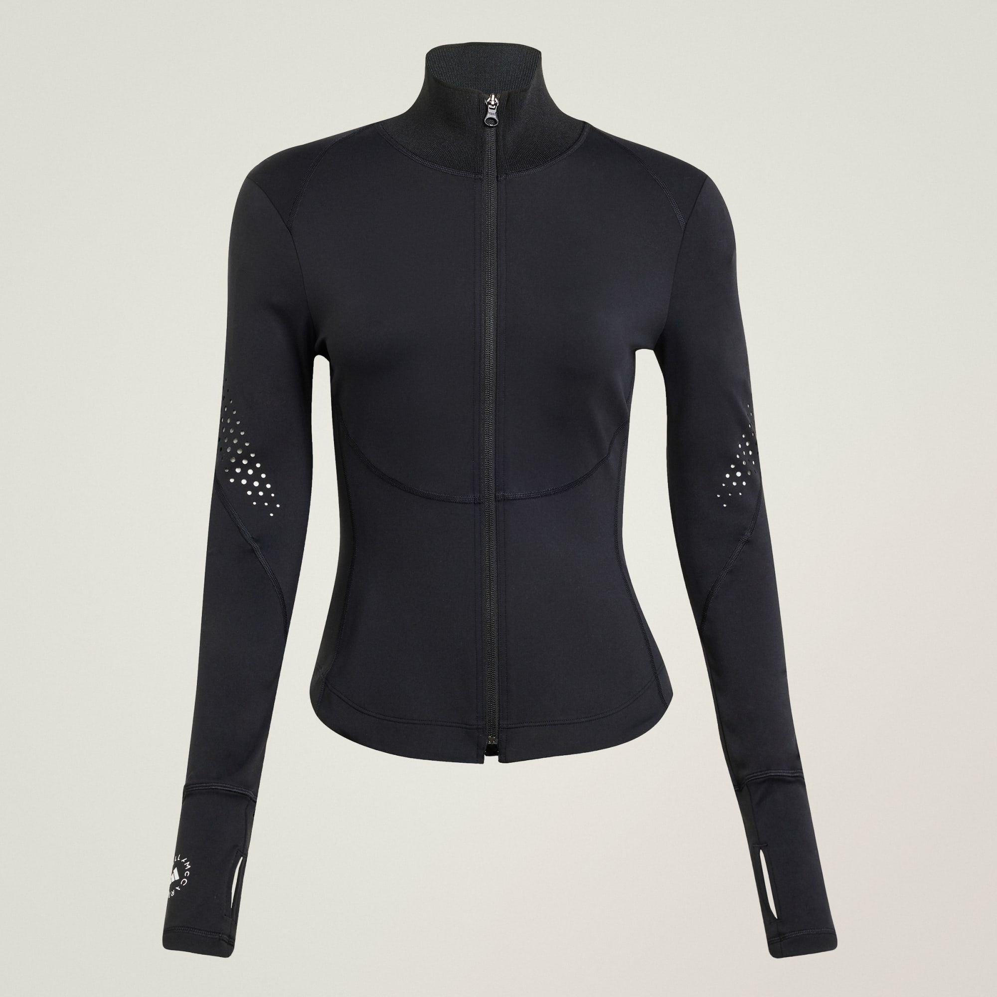Det här adidas by Stella McCartney Training Midlayer tröja sitter som en andra hud och ger stöd åt kroppen med AdiSOFT Luxe-material och Lycra® Adaptiv™ för anpassningsbar passform och extra komfort. De laserskurna detaljerna på ärmarna ger bättre ventilationen och tumhålen håller plagget på plats när du rör dig.
