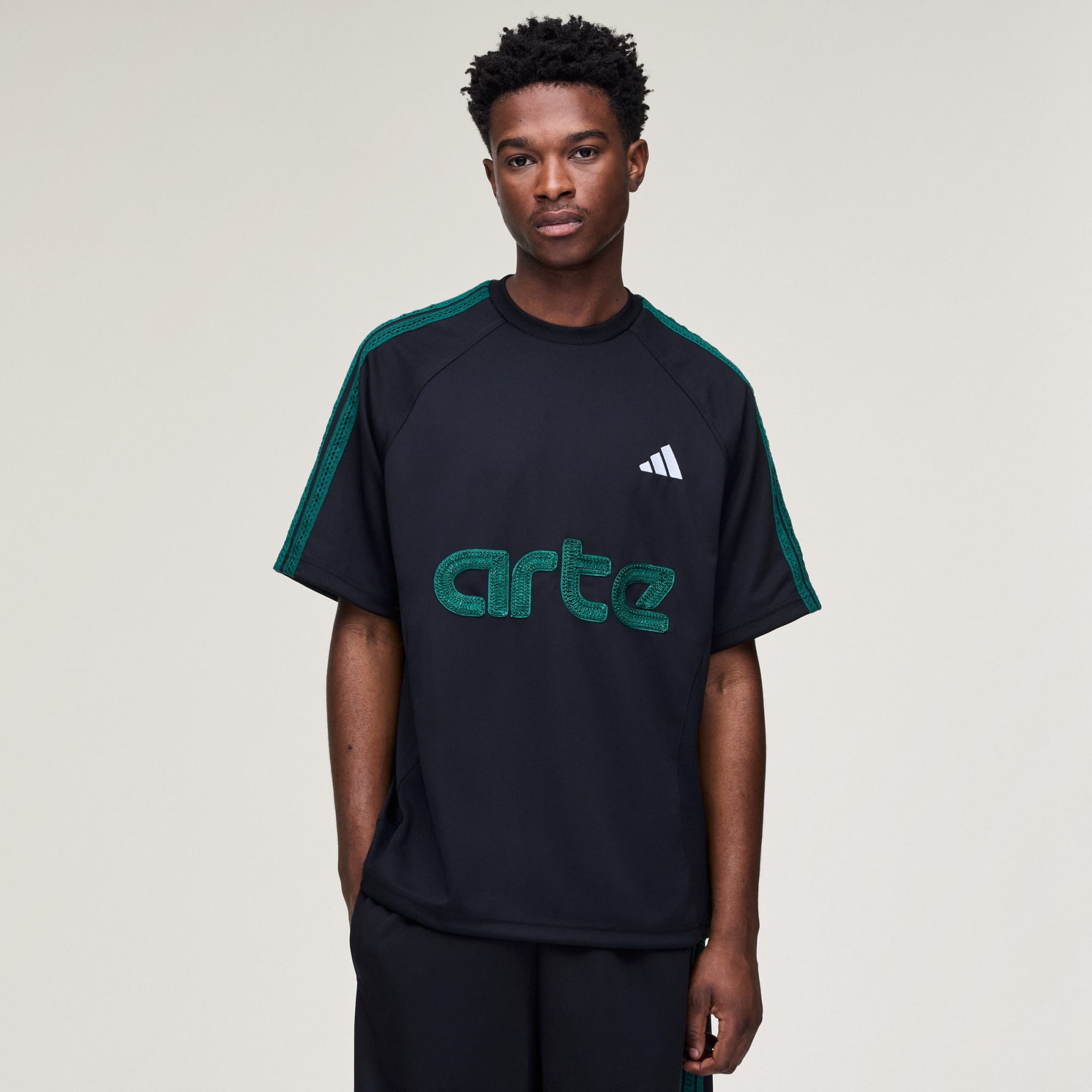Den här adidas x Arte Antwerp-tröjan är en hyllning till Nordafrikas rika fotbollsarv. Tröjan visar upp Artes konstnärliga förmåga och skapar ett unikt plagg som sticker ut både på och utanför planen. Den dubbelstickade konstruktionen ger tröjan en lös passform och en avslappnad och bekväm känsla. Den broderade 3 Bar-loggan och Arte-designen ger en sofistikerad touch, medan de dekorativa detaljerna på axlar och ärmar förstärker den stilriktiga looken. Integrerad Climacool-teknik leder bort svett för en sval, torr och distraktionsfri prestation. Det snabbtorkande materialet arbetar hårt för att du ska känna dig bekväm, även när det hettar till på planen. Den här tröjan hyllar den nordafrikanska fotbollens inflytande och ikoniska spelare och är den perfekta följeslagaren oavsett om du hejar från läktaren eller spelar på planen.