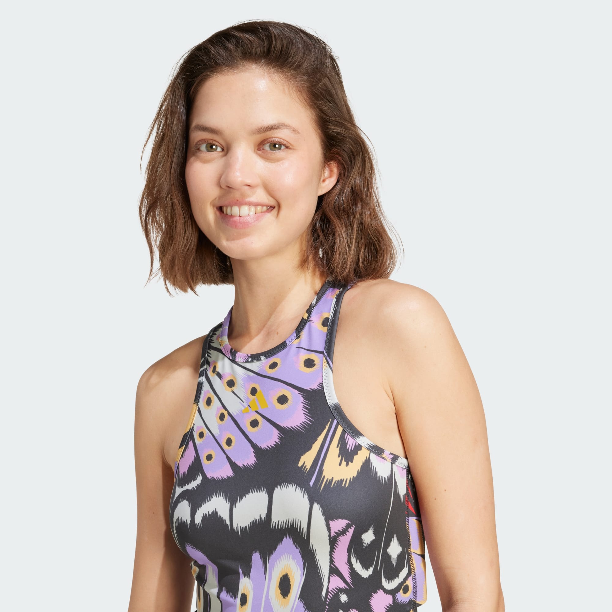 Känn dig självsäker i adidas X FARM Premium Klänning. Den här klänningen med figurnära passform har ett livfullt heltäckande tryck inspirerat av Colombias naturliga prakt och den fångar fjärilens skönhet och elegans. Det lena interlock-tyget följer dina former och du kan röra dig fritt. Perfekt för att dansa eller helt enkelt för att njuta av en fantastisk känsla. Den här klänningen förenar, med sitt moderna snitt och iögonfallande tryck, latinamerikansk kultur, feminin styrka och fjärilens symbolik.