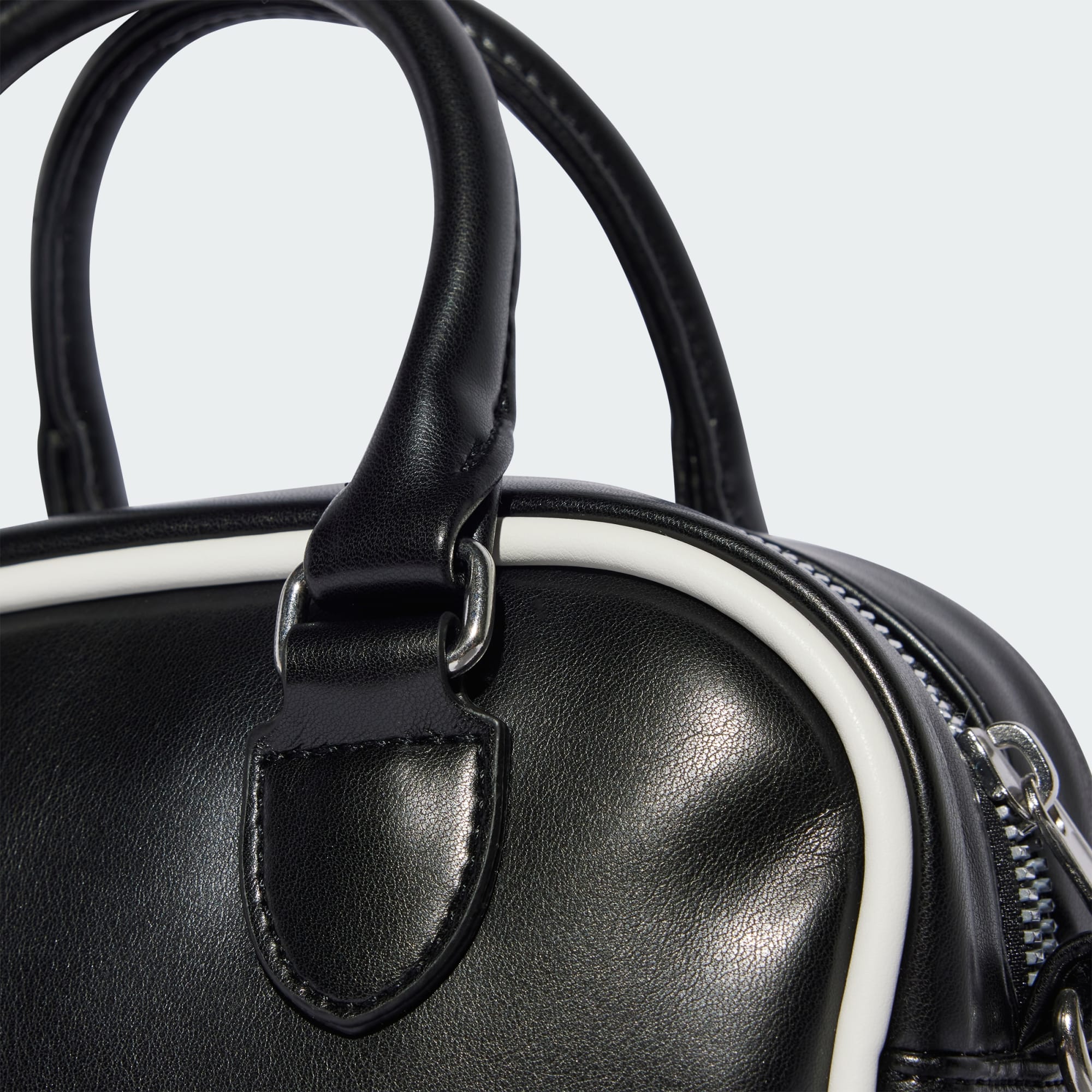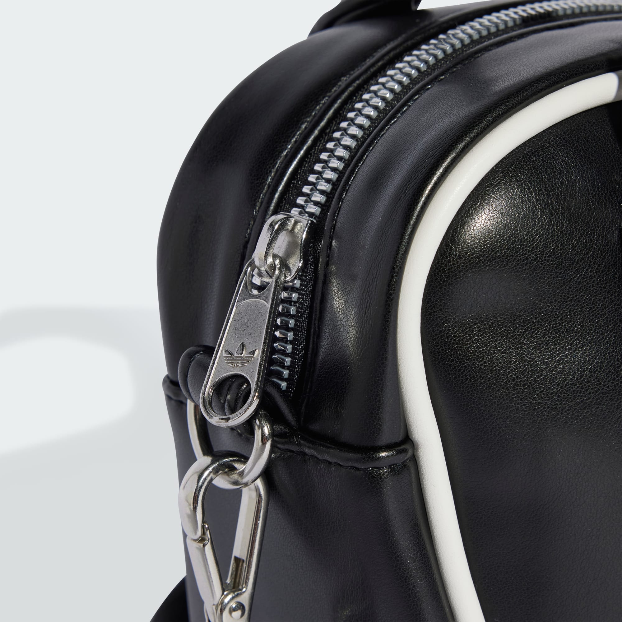 Livliga klubbscener och 90-talskonst. Sport och mode. Detta inspirerar adidas och Jeremy Scott-kollektionen. Denna mini-bowlingväska är en kompakt version av den klassiska stilen. Kontrastfärgad kantband och en präglad grafik bidrar till den häftiga looken. Förvara dina saker i det rymliga huvudfacket och fickan med dragkedja när musiken dunkar.
