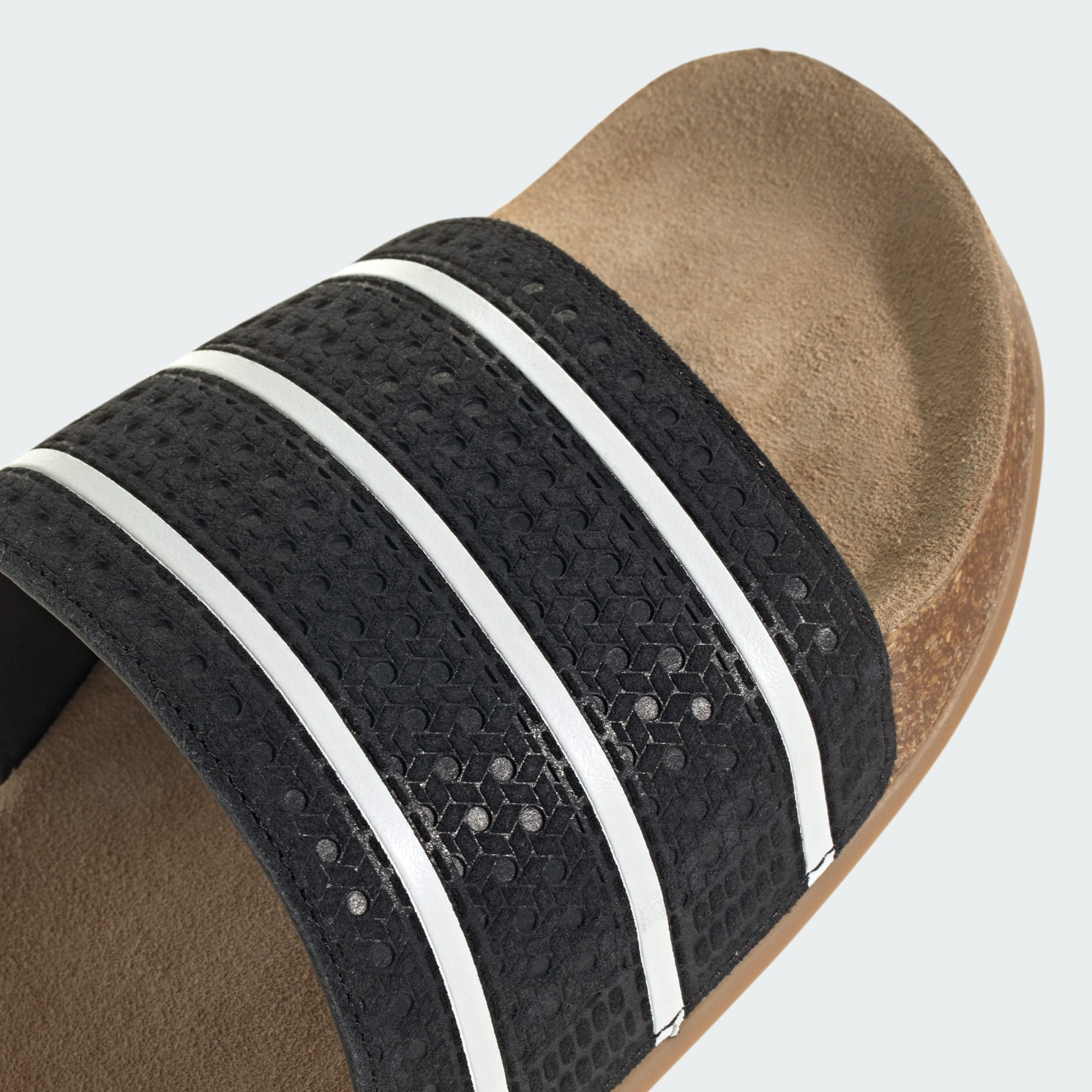 Förstklassiga Adilette-tofflor med fotbädd i äkta mocka.