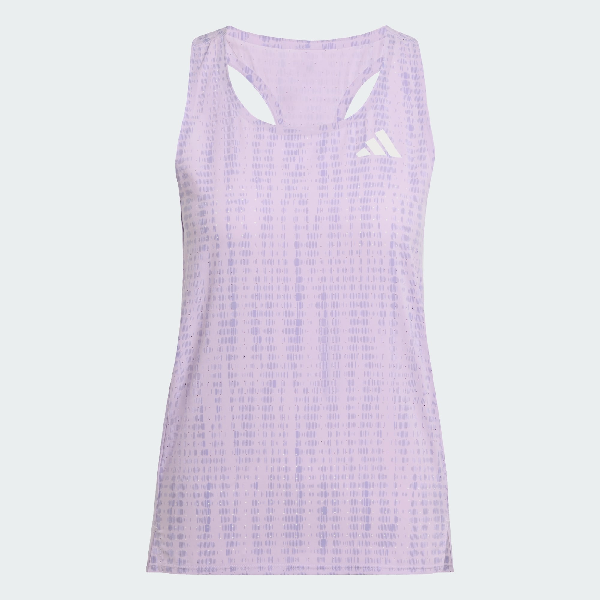 Ta sikte mot toppen. Nå dina mål. Oavsett om du slår ett nytt personbästa eller springer ditt första maraton ger det här superlätta löparlinnet från adidas störningsfri funktion så att du kan nå dina mål. Den har en smal passform som knappt känns och perforeringar som låter luften cirkulera. Sidosömmarna är framåtskjutna och slitpunkterna är tejpade för att minska skav och friktion.