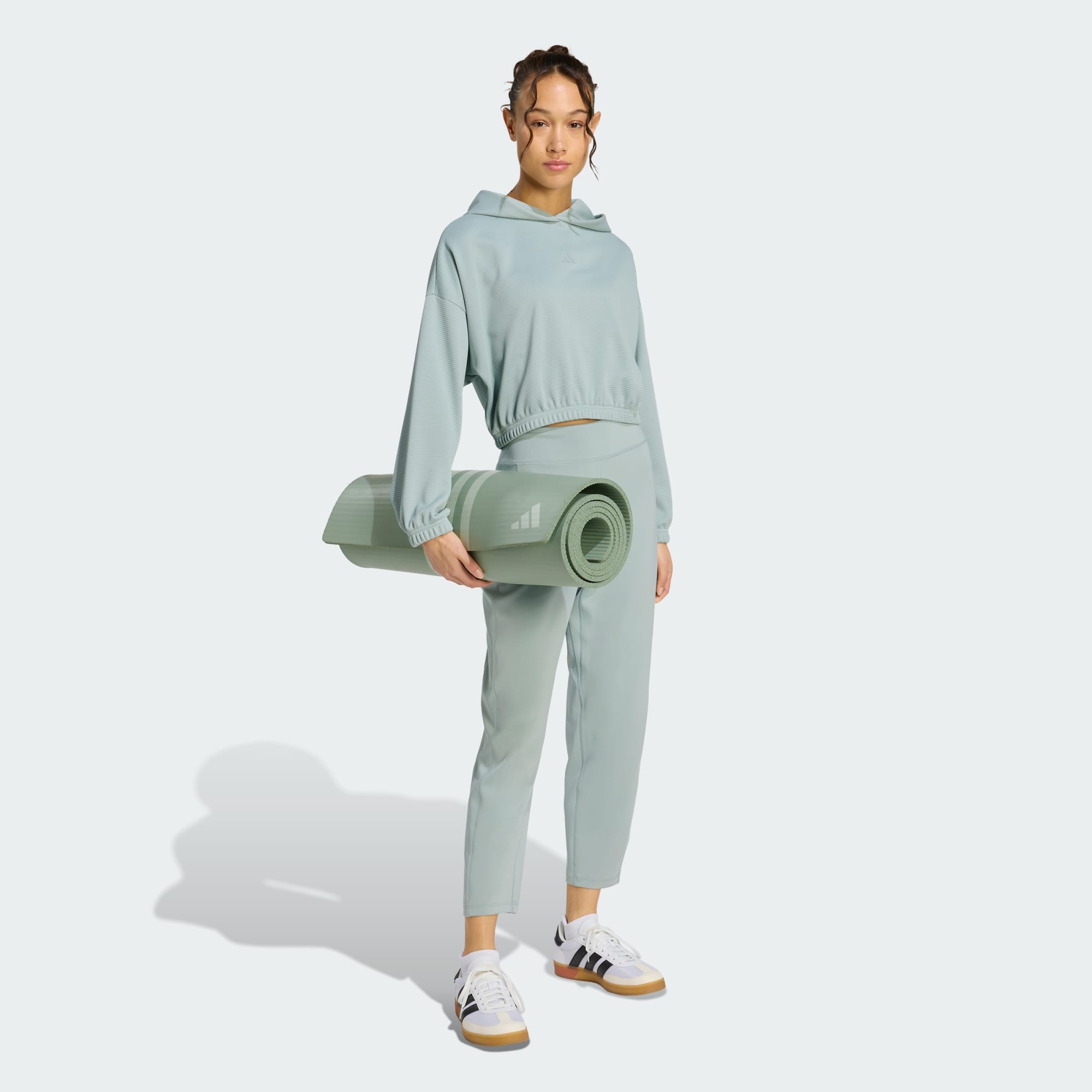 Hitta ditt inre lugn i dessa yogabyxor från adidas. De har välgenomtänkt design med avsmalnande ben och ankellängd så att du kan hålla fokus på din form i varje position. Ta på dig dem före nästa Vinyasa- eller meditationspass och känn dagens stress rinna av dig. Denna produkt är tillverkad av minst 70 % återvunna material. Genom att återanvända material bidrar vi till minskat avfall och till att minska beroendet av ändliga resurser, samt till att reducera miljöavtrycket från våra produkter.