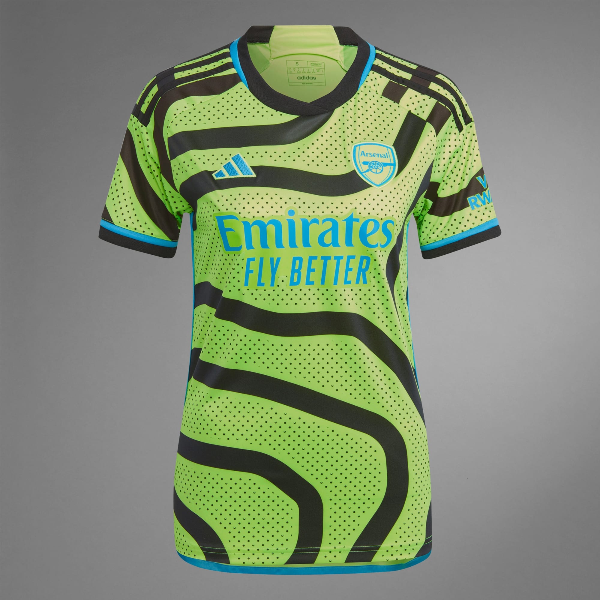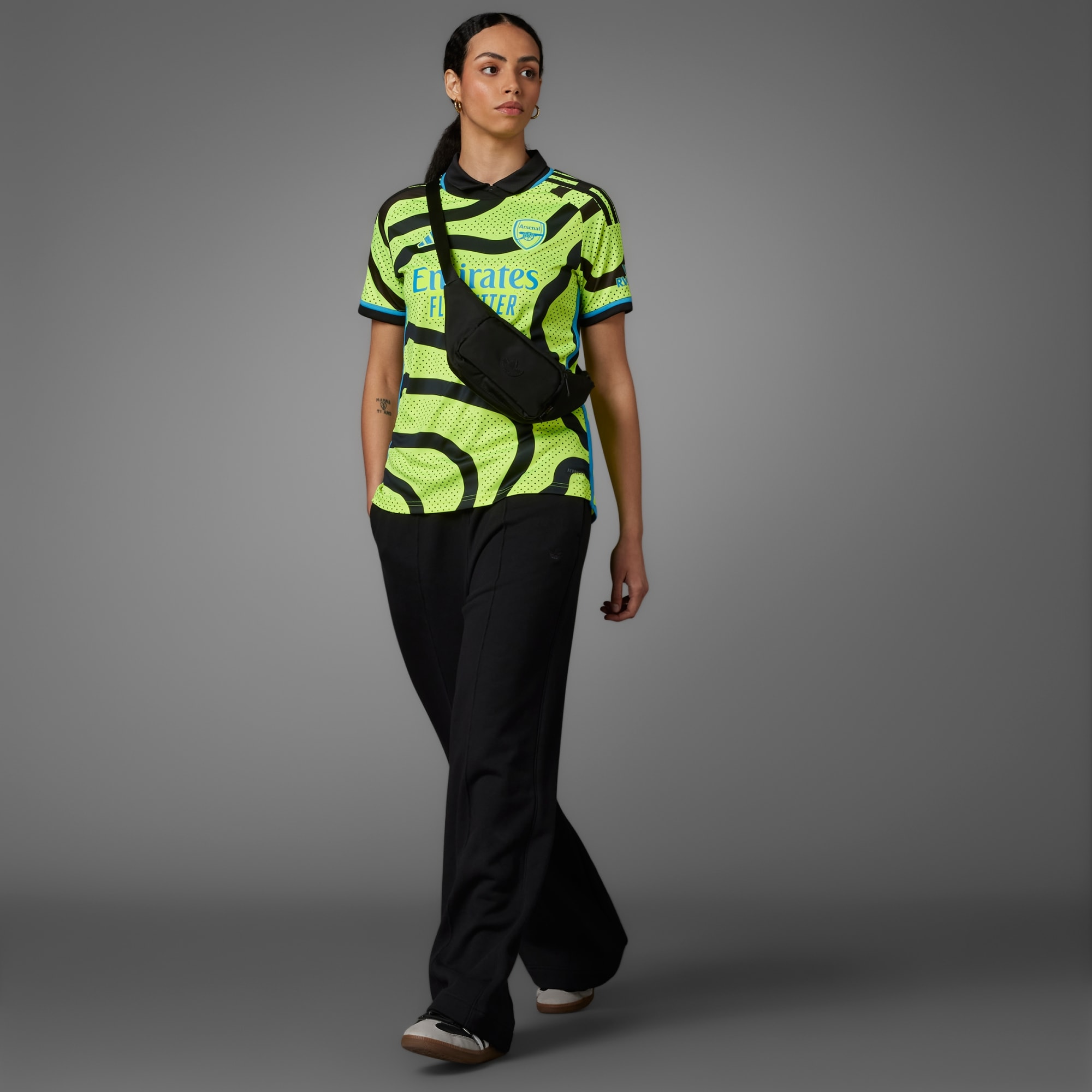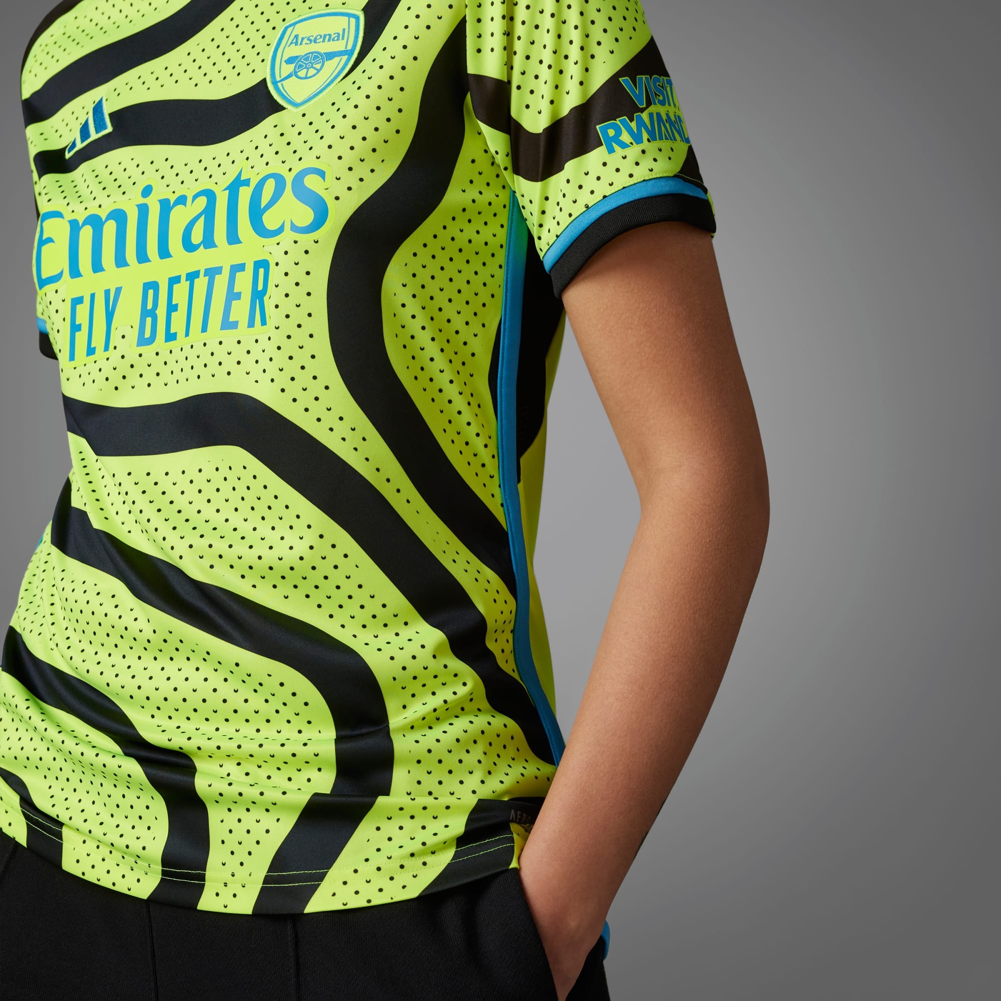 Hemma bäst, men Gooners reser världen runt för att heja på Arsenal – och oavsett om det är en pilgrimsfärd till Emirates Stadium eller en bortamatch utomlands så handlar matchdagarna lika mycket om resan som spelet. Arsenals bortatröja 23/24 är inspirerad av passionen hos resande supportrar och tar designinspiration från en karta över lagets kvarter, med en böljande design som speglar strömmen av Arsenal-supportar. Uppdateringen fulländas med en fräsch, chockgul färg och ljusblå detaljer. Den är gjord för fansens komfort och kombinerar mjukt material med svettabsorberande AEROREADY.
