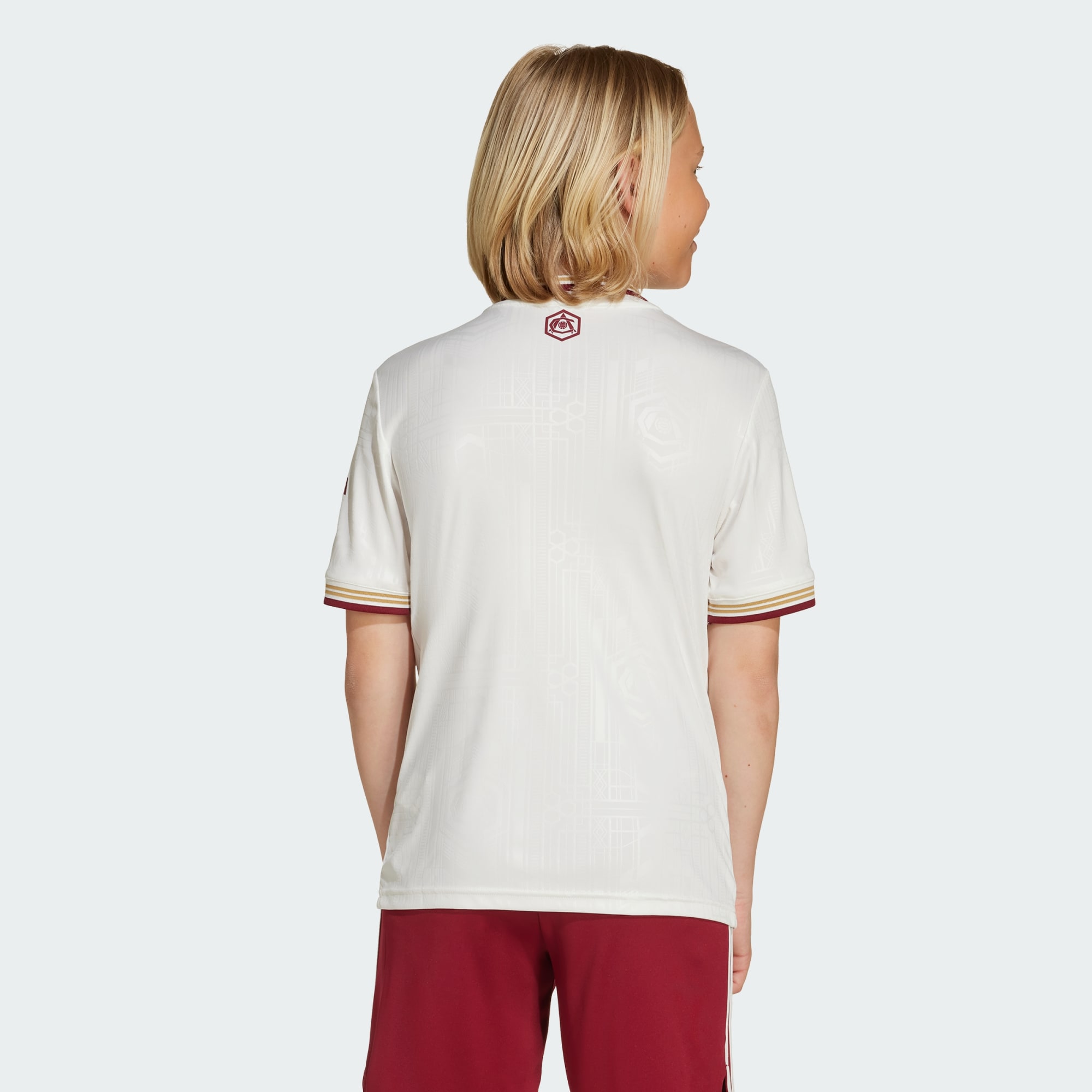 Den här adidas-fotbollströjan för juniorer hyllar art déco-elegansen på Highburys östra läktare, 20 år efter Arsenals sista säsong på arenan. Tröjan är designad för att uppskattas av fans i alla åldrar, med sin off-white-färg, intrikata heltäckande grafiska tyck och emblemet i retrostil i nacken. Fukthanterande AEROREADY och ett mjukt tyg ser till att du håller dig bekväm medan du stöttar ditt lag.
