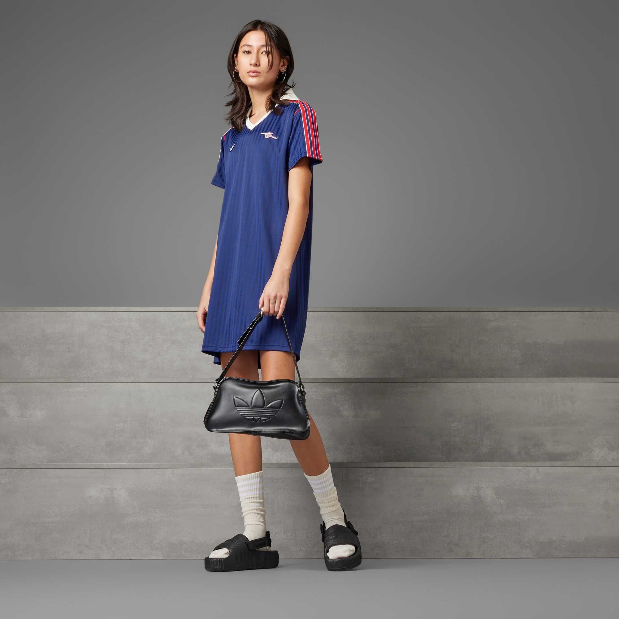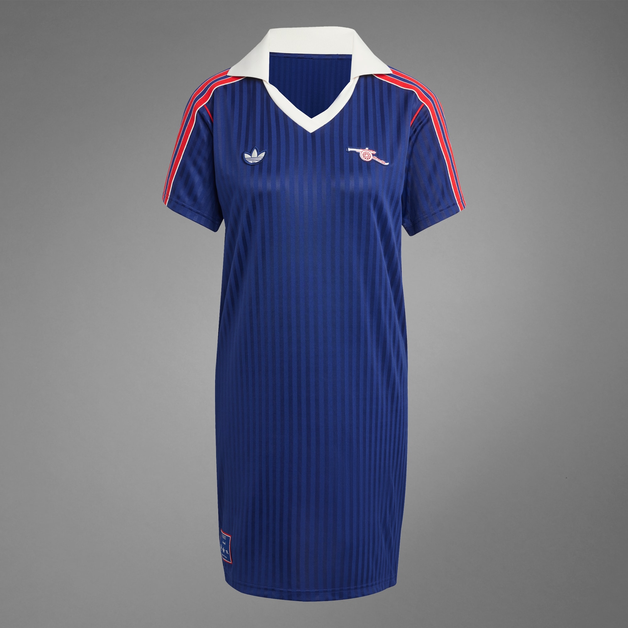 Reppa ditt lag med stolthet i den här Arsenal-klänningen från adidas. Det här plagget är inspirerat av fotbollsmode och förvandlar en ikonisk 80-talslook till en stilfull vardagsoutfit. Det något glansiga materialet och den klassiska pikékragen är en blinkning till matchtröjor, och det retroinspirerade kanonemblemet på bröstet ger vintagekänsla. Den här produkten är gjord med 100 % återvunnet material. Genom att återanvända material som redan skapats bidrar vi till att minska avfall, minska vårt beroende av ändliga resurser och minska våra produkters miljöavtryck.