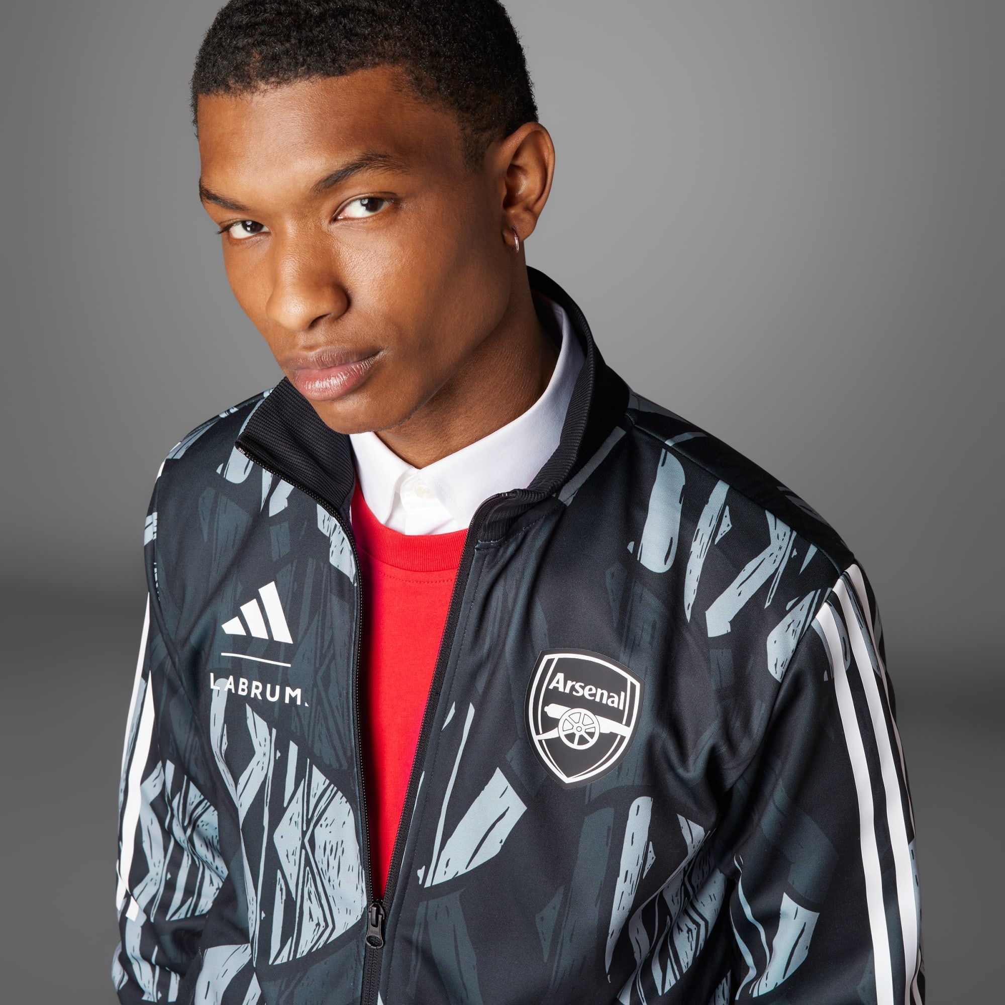 Den här Arsenal-träningsjackan är gjord i samarbete med Labrum London och drar blickarna till sig.