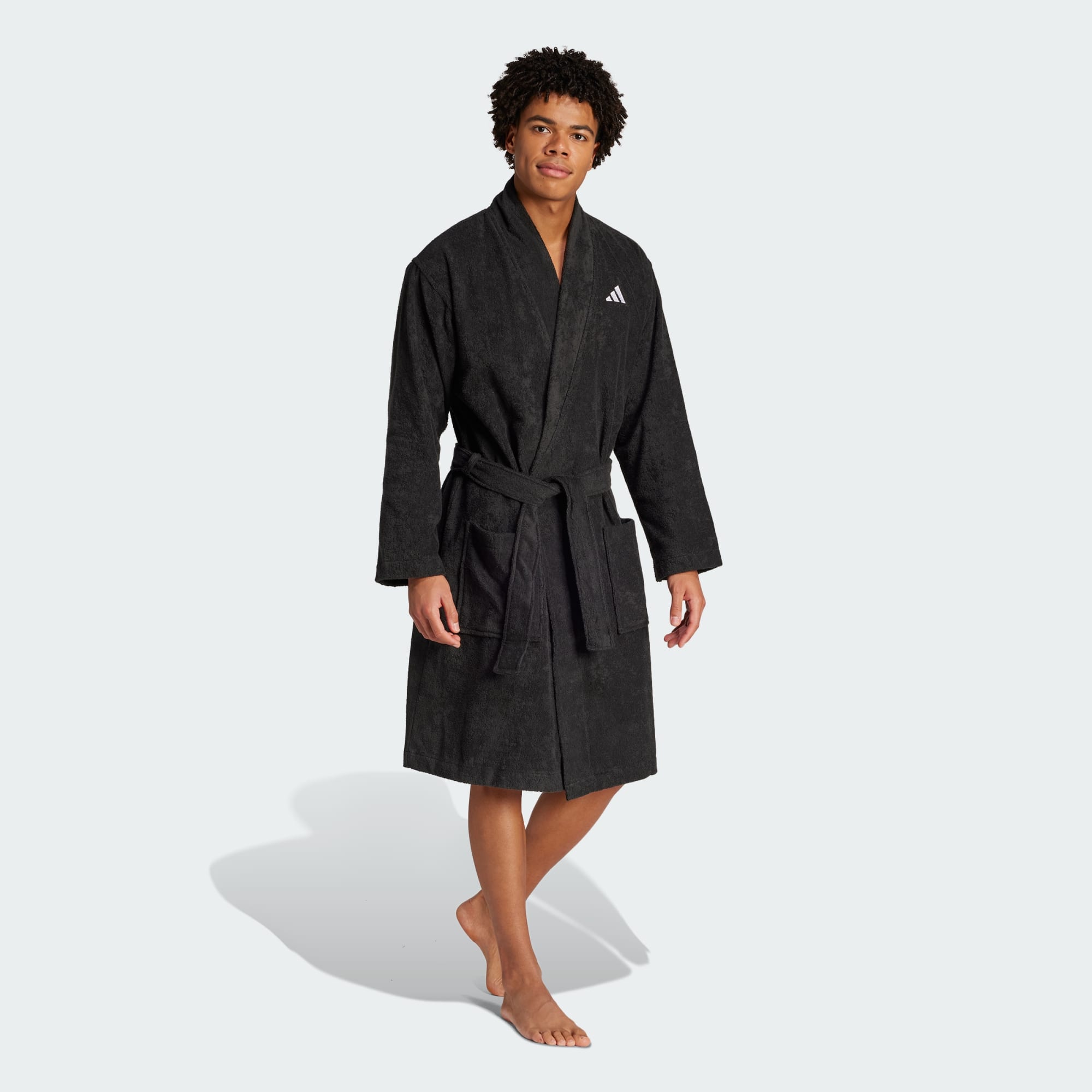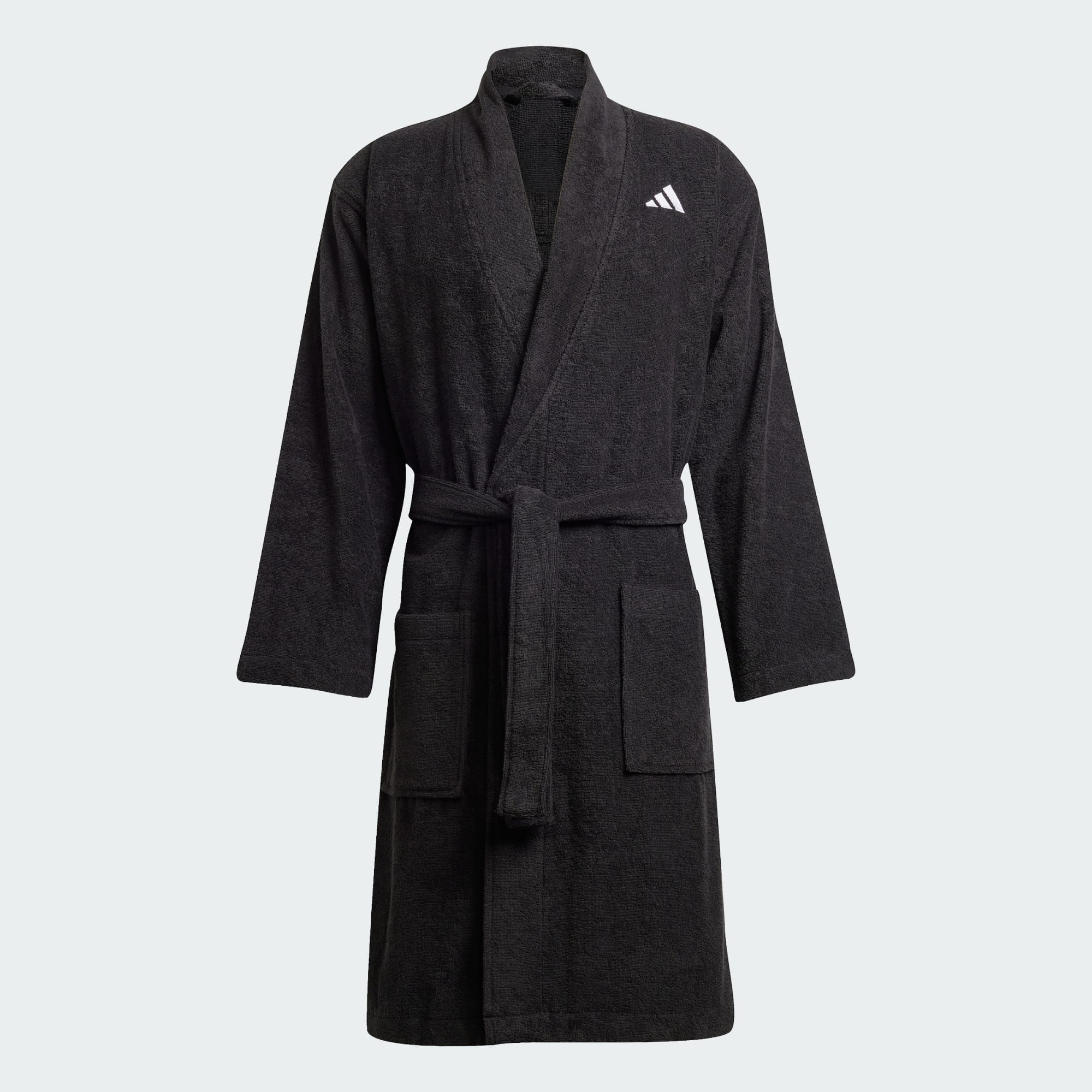 Låt dig omslutas av ledig lyx efter simningen i den här badrocken från adidas. Den är gjord i lätt och absorberande bomull som känns mjuk och varm att dra på sig efter längderna i poolen. En broderad 3 Bar-logga för tankarna till adidas sportarv.