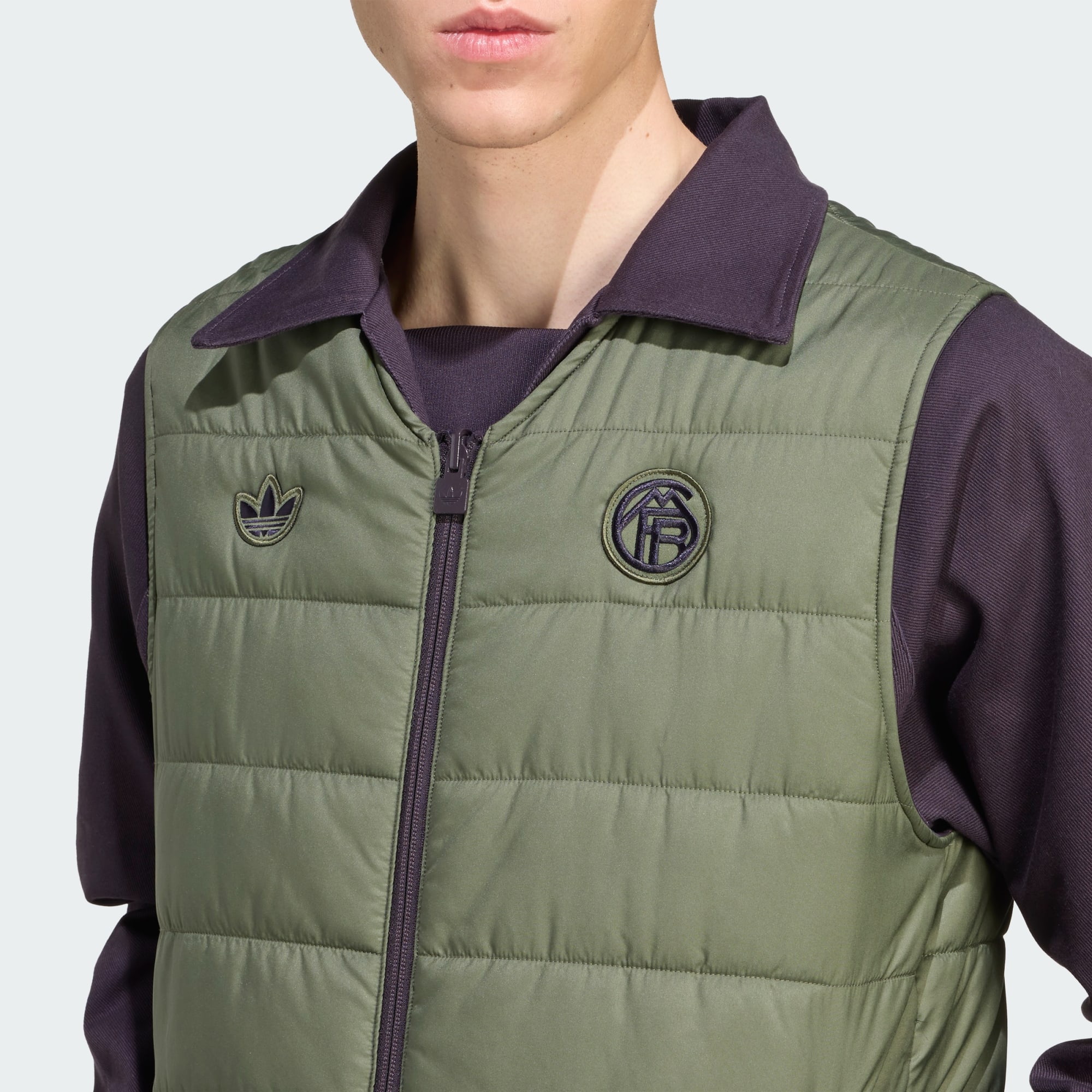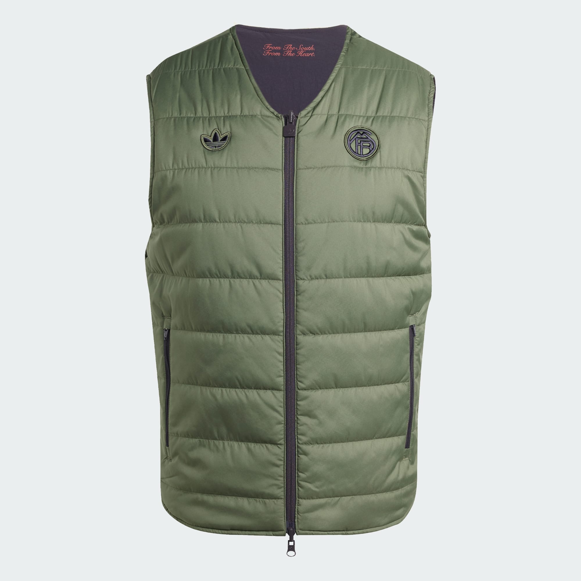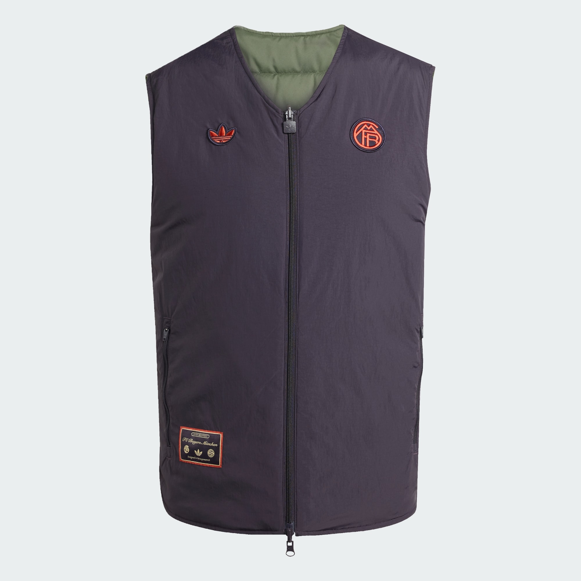 Skapad för stolt retrofotbollsstil. Denna vändbara Bayern München-väst är en del av en 80-talsinspirerad adidas-kollektion och har vintageklubbemblem och Trefoil-logga på båda sidor. Fickor med dragkedja förvarar viktiga prylar så att du har händerna fria på matchdagar.