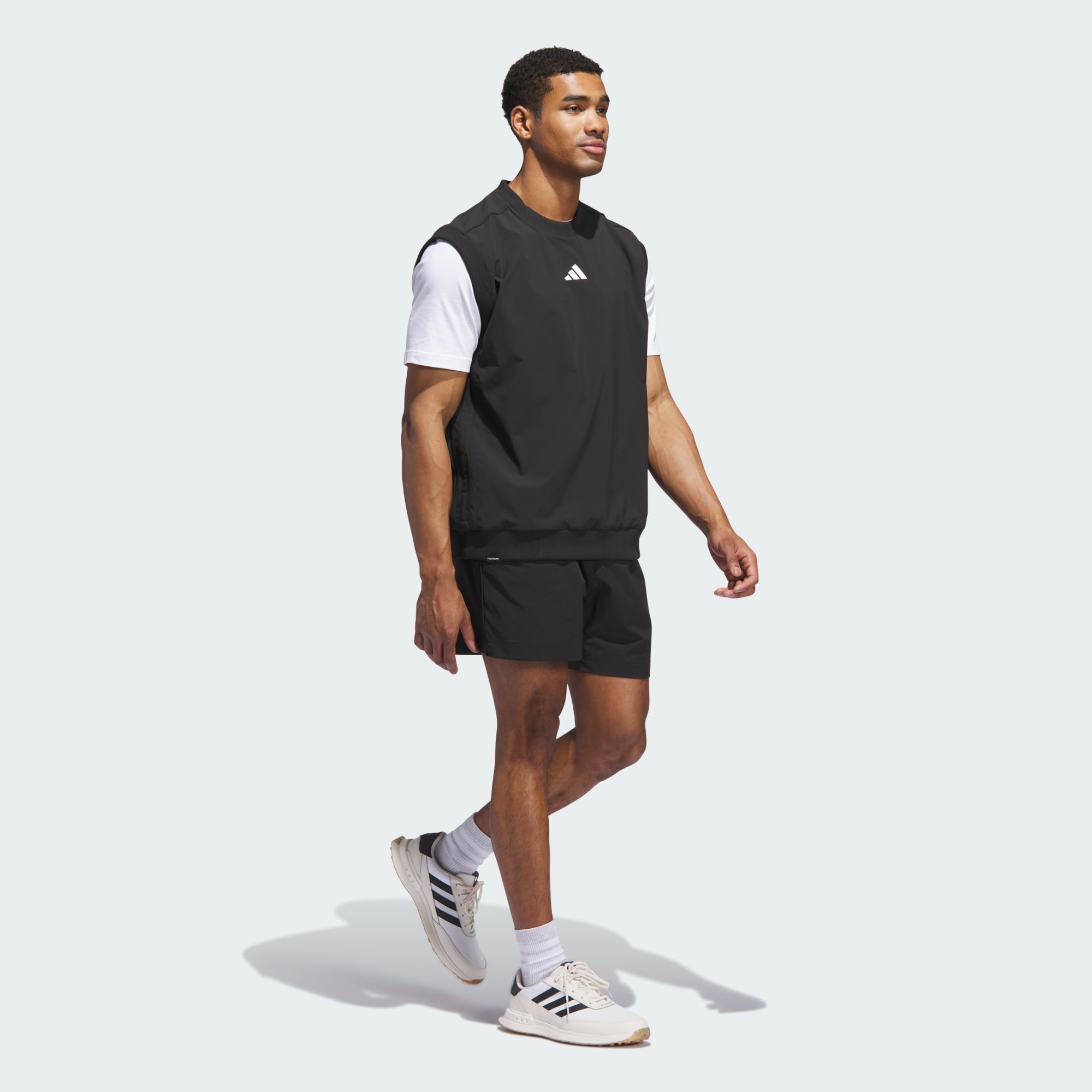 Den här golfvästen från adidas har klassiska 3-Stripes och en atletisk look för banan. Det integrerade Twistweave-materialet med stretch ger full rörelsefrihet för spel och avkoppling.