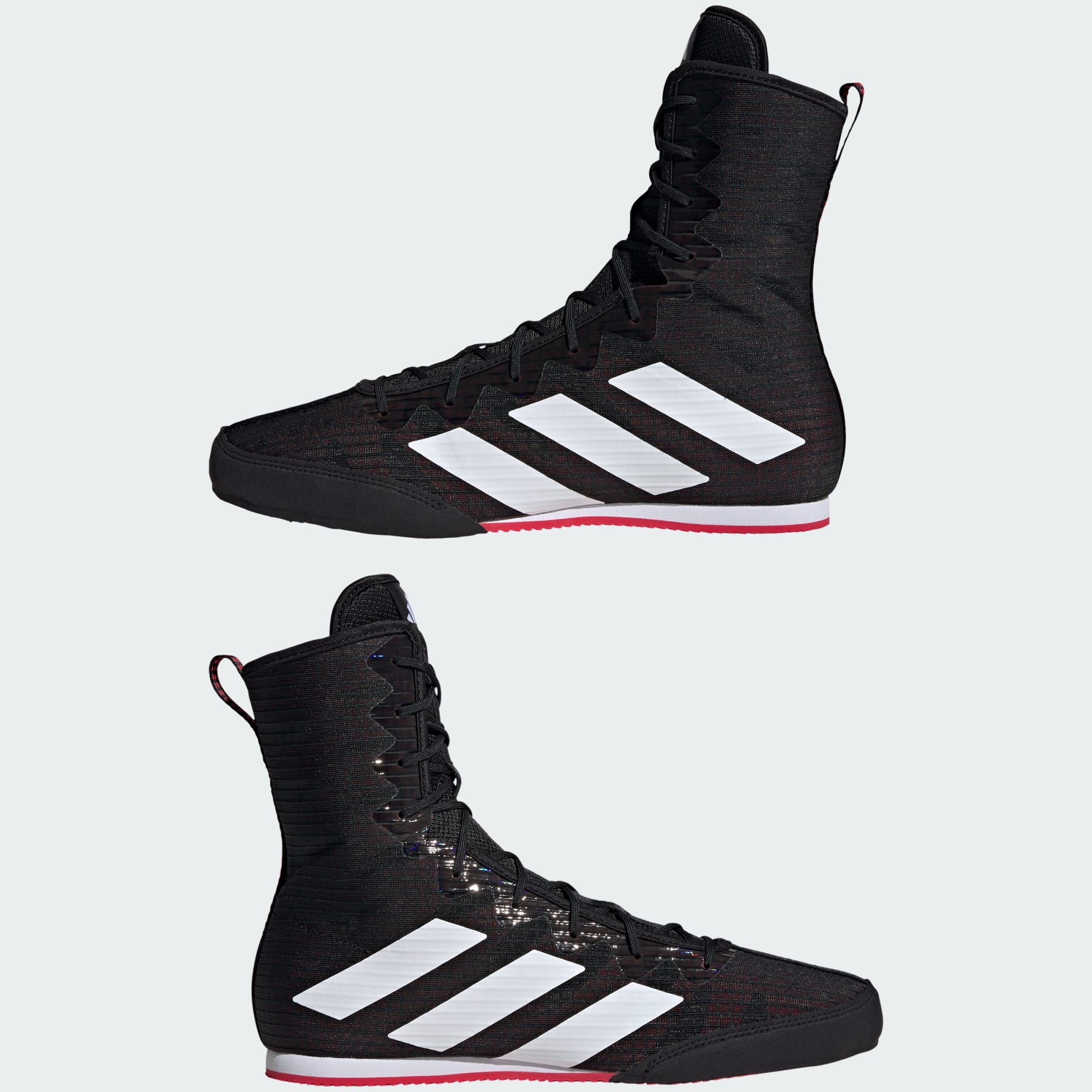 Beprövade och pålitliga. adidas Box Hog boxningsskor är en klassiker på gymmet eller i ringen, och de håller intensiteten på topp tack vare den ventilerande ovandelen i mesh och de invändiga förstärkningarna. Den formskurna mellansulan i EVA ger stöd åt mellanfoten för en stabil känsla. Yttersulan greppar mattan i alla riktningar så att du kan dominera fotarbetet. Ovandelen är gjord i en rad återvunna material och består av minst 50 % återvunnet innehåll. Den här produkten är en av våra lösningar för att bidra till att sätta stopp för plastavfallet.