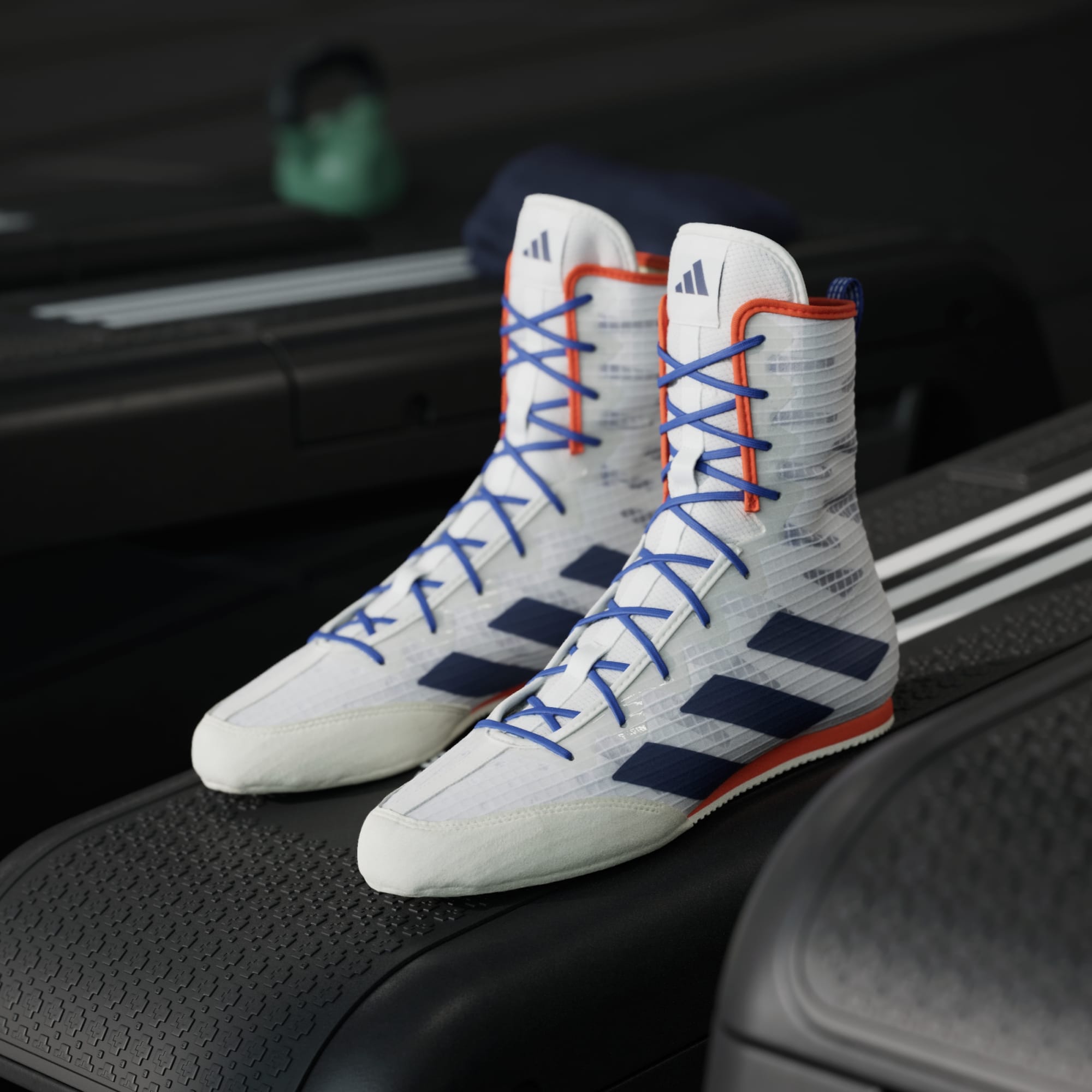 Beprövade och pålitliga. adidas Box Hog boxningsskor är en klassiker på gymmet eller i ringen, och de håller intensiteten på topp tack vare den ventilerande ovandelen i mesh och de invändiga förstärkningarna. Den formskurna mellansulan i EVA ger stöd åt mellanfoten för en stabil känsla. Yttersulan greppar mattan i alla riktningar så att du kan dominera fotarbetet. Ovandelen är gjord i en rad återvunna material och består av minst 50 % återvunnet innehåll. Den här produkten är en av våra lösningar för att bidra till att sätta stopp för plastavfallet.