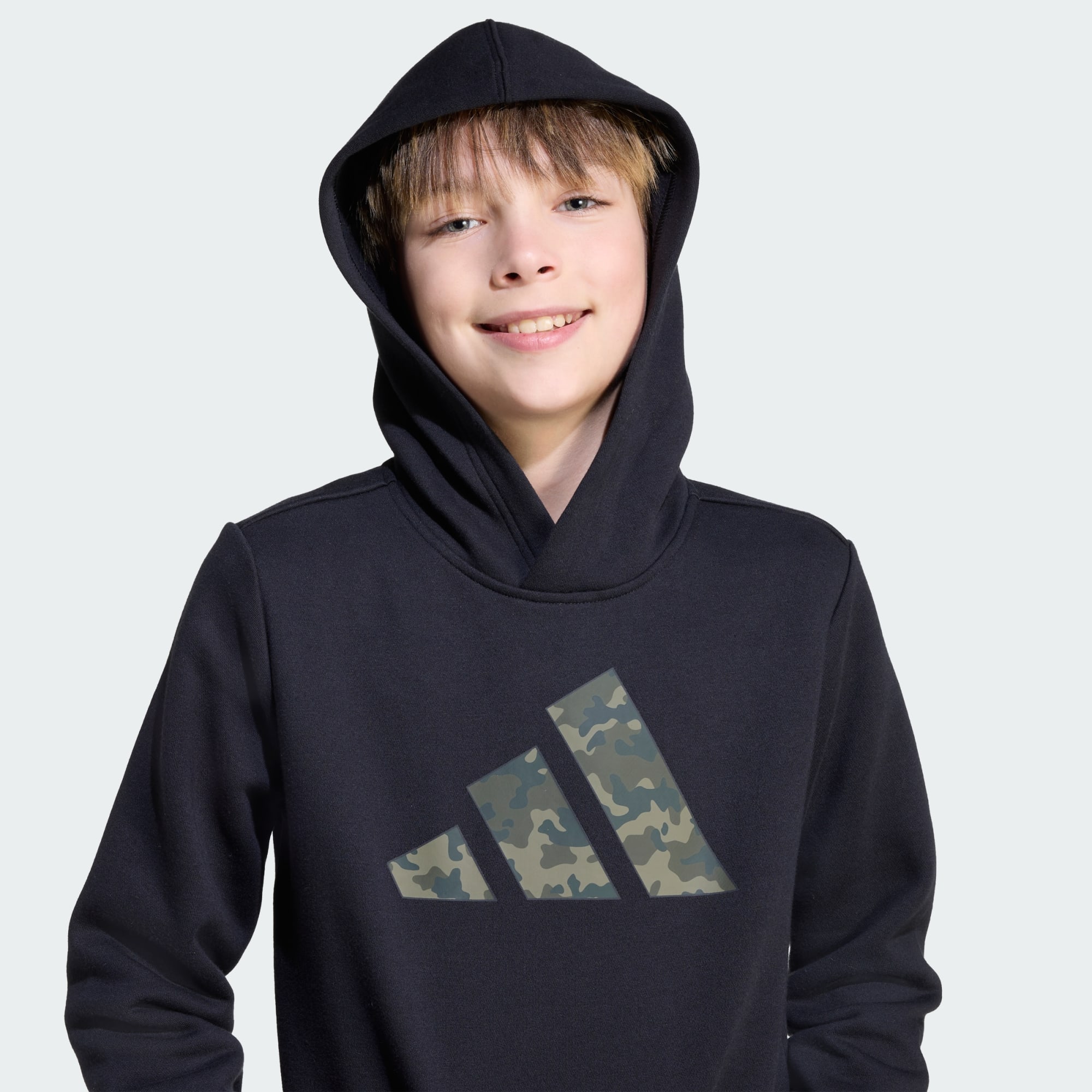 Denna adidas-huvtröja för juniorer erbjuder enkel, vardaglig komfort och värme som du kan bära under en jacka eller för sig. adidas sportswear-logotypen är mönstrad med en cool kamouflagedesign. Den rymliga huvan och den stora framfickan ger extra skydd och användbarhet.