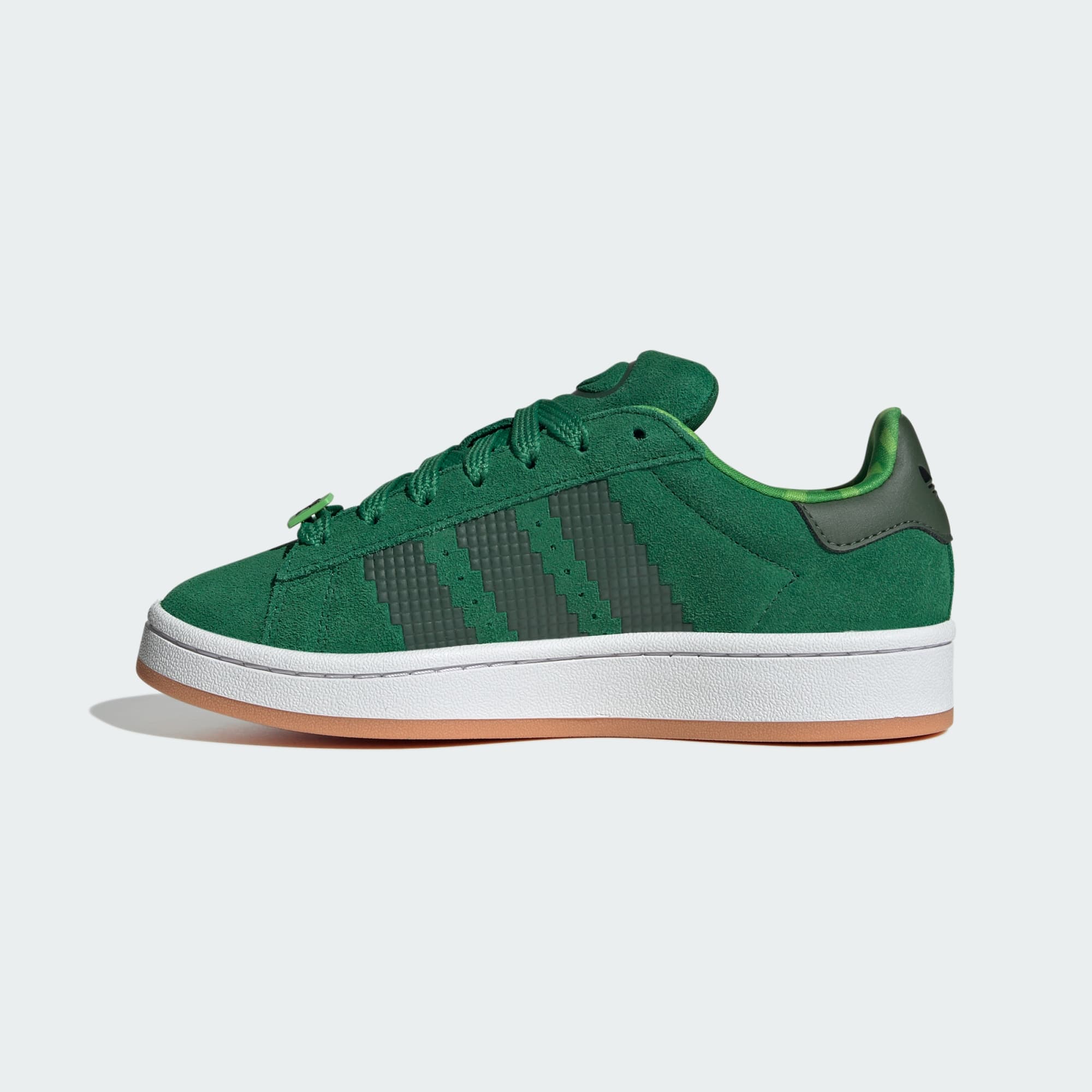 De här skorna för juniorer är en del av samarbetet mellan adidas Originals och Minecraft och är ett måste för fans av det ikoniska datorspelet. Ovandelen i läder och den klassiska siluetten fulländas med pixlade detaljer och Minecraft-färger för en look som tar dig på en resa genom Övervärlden. Med Campus 00s x Minecraft-skorna kan du uttrycka din kreativitet och kärlek till äventyr från första steget.