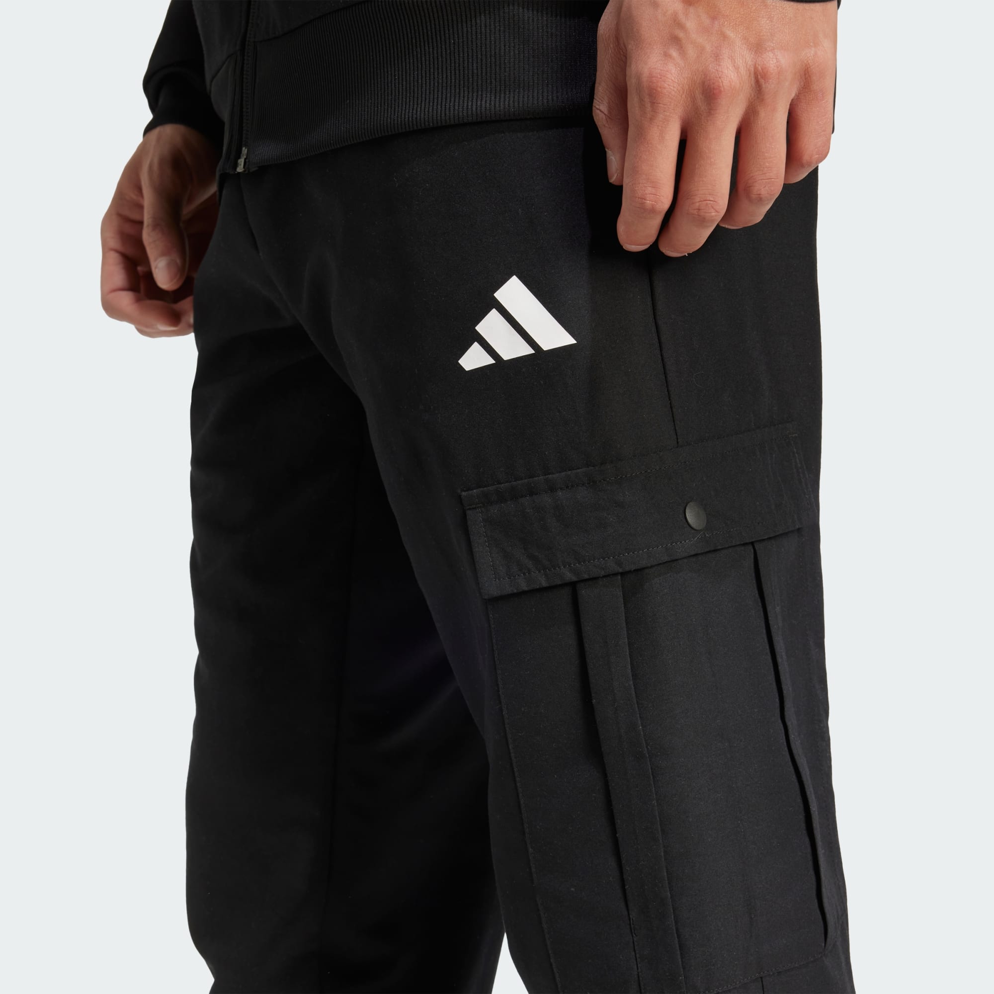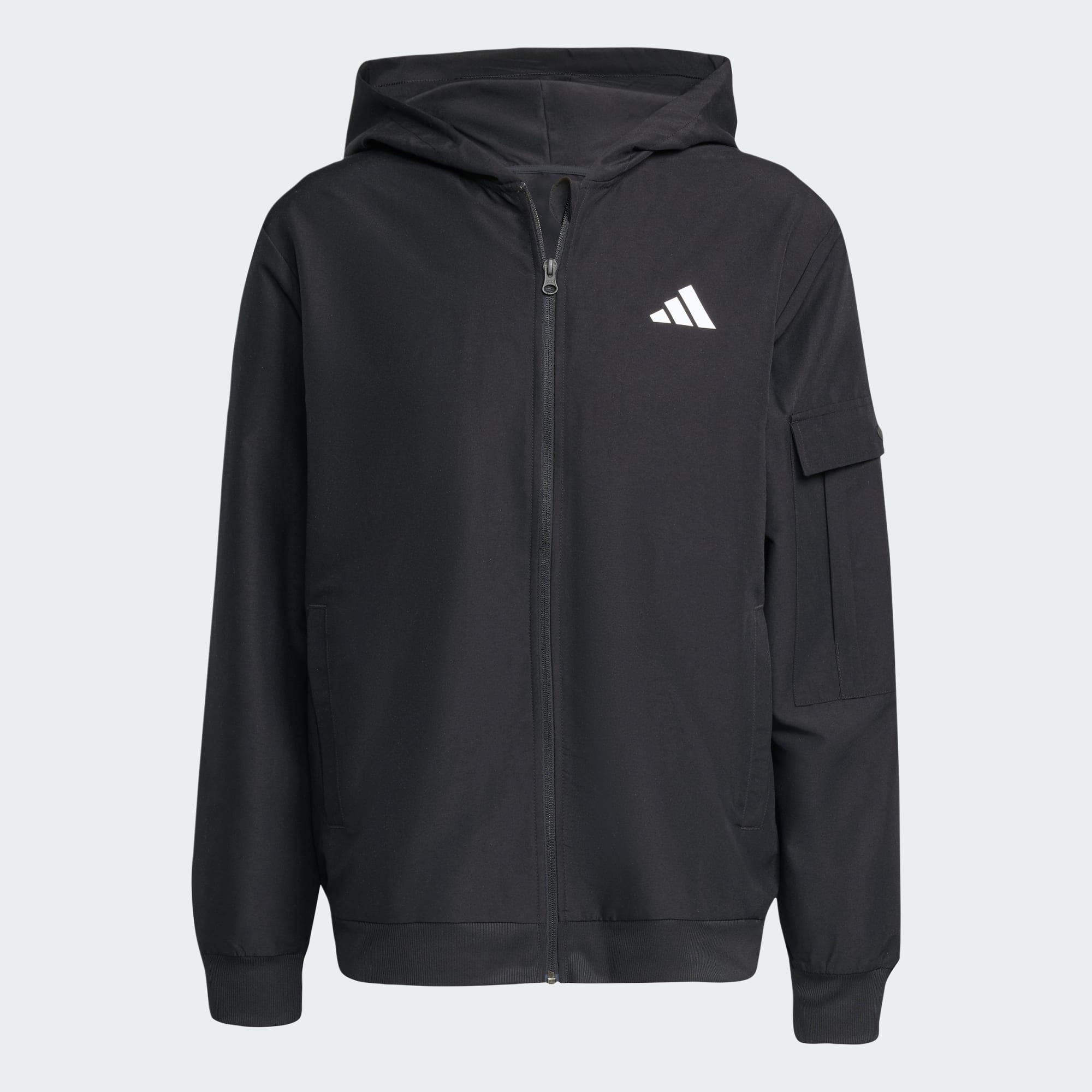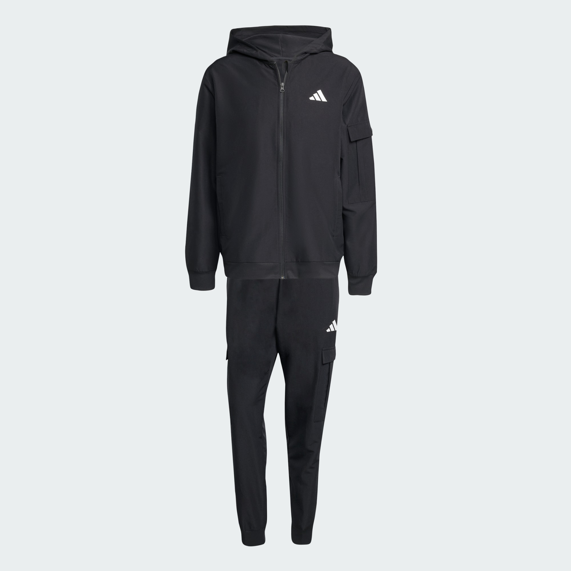 En hektisk dag på ditt schema kräver enkelhet och komfort i denna mångsidiga adidas-träningsoverall. Cargofickor ger gott om plats för dina nödvändigheter så att du inte behöver sakta ner. Det vävda tyget är gjort för långvarigt bruk och de sportiga 3 Bar-logotyperna på bröstet och låret visar en subtil kärlek till varumärket.