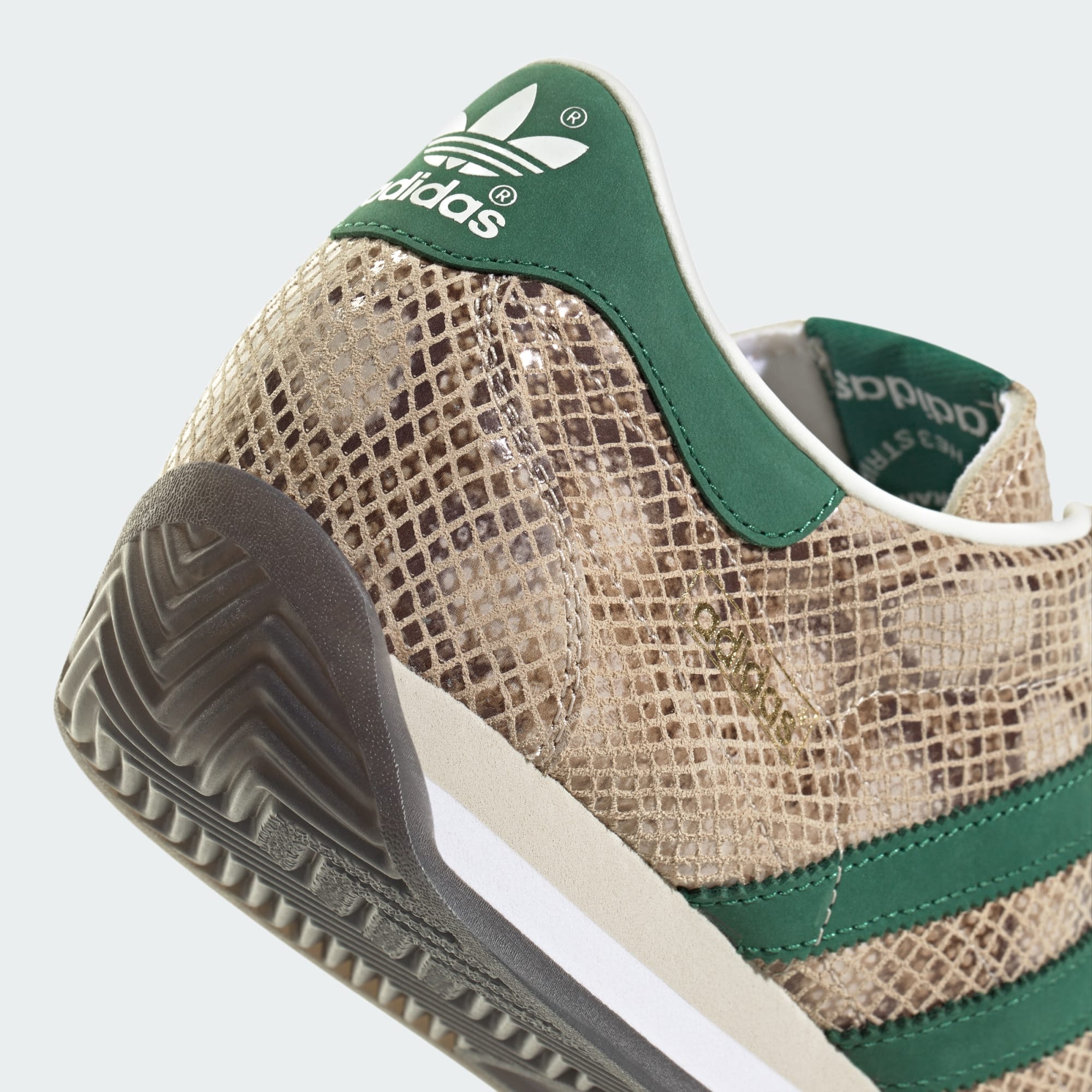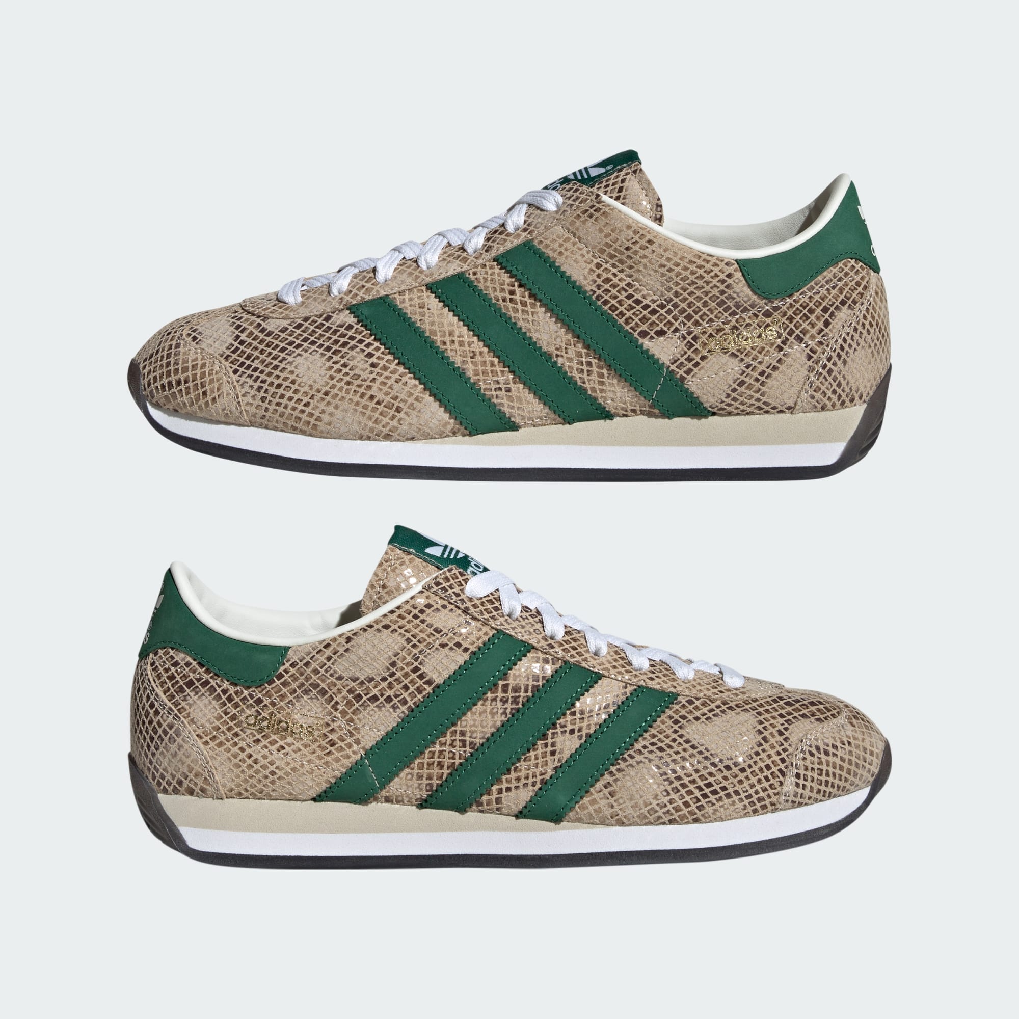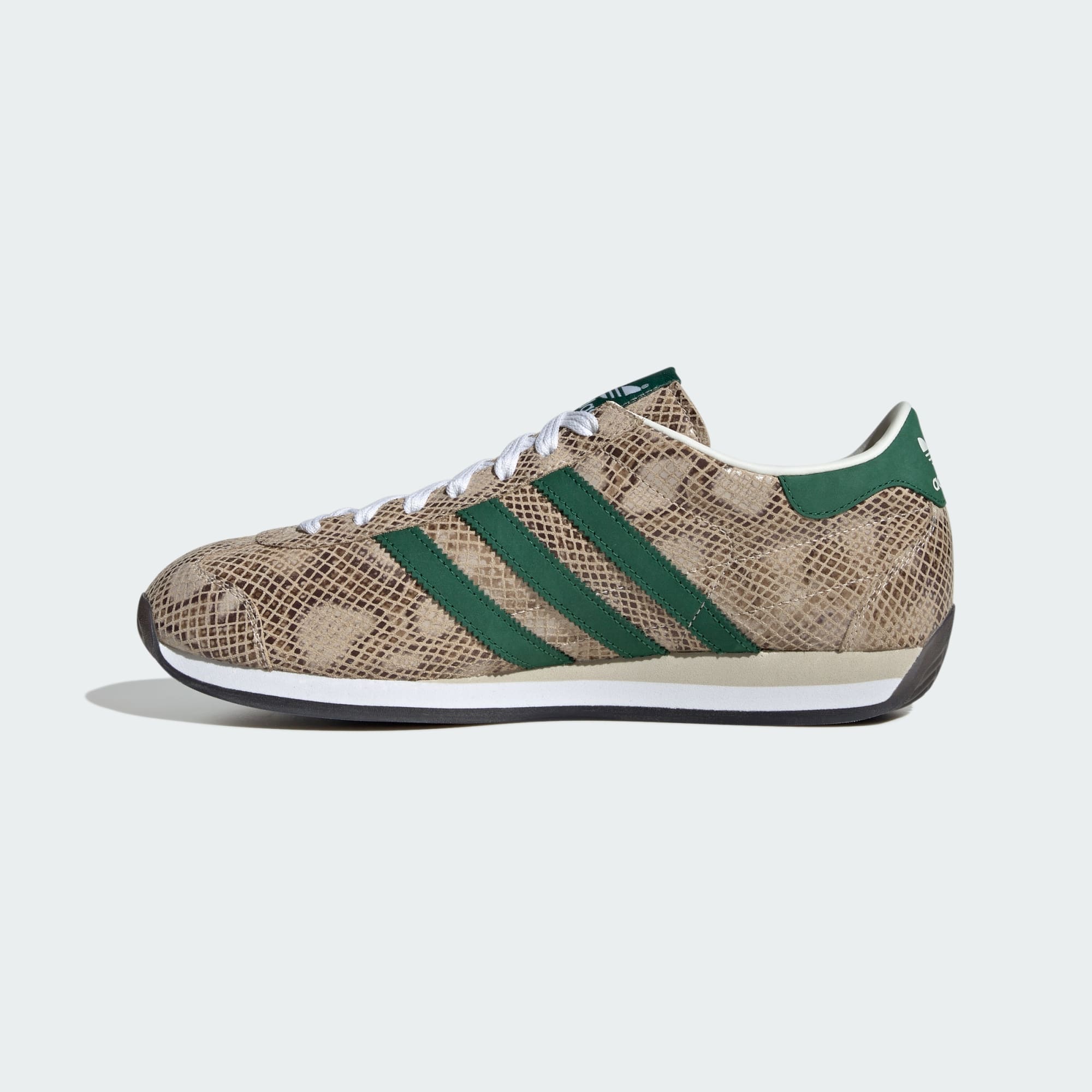 En av de mest exklusiva versionerna av adidas Country-skorna tillverkades i Japan, så för att hedra våra rötter introducerar vi dessa Country Japan-sneakers. De har en ovandel i förstklassigt, ormmönstrat läder med detaljer i svinnubuck och en mjuk mellansula i EVA för extra komfort. Hantverkskunnande och detaljer är avgörande här – med en justerad yttersula och en lite smalare gjuten hälkopp.