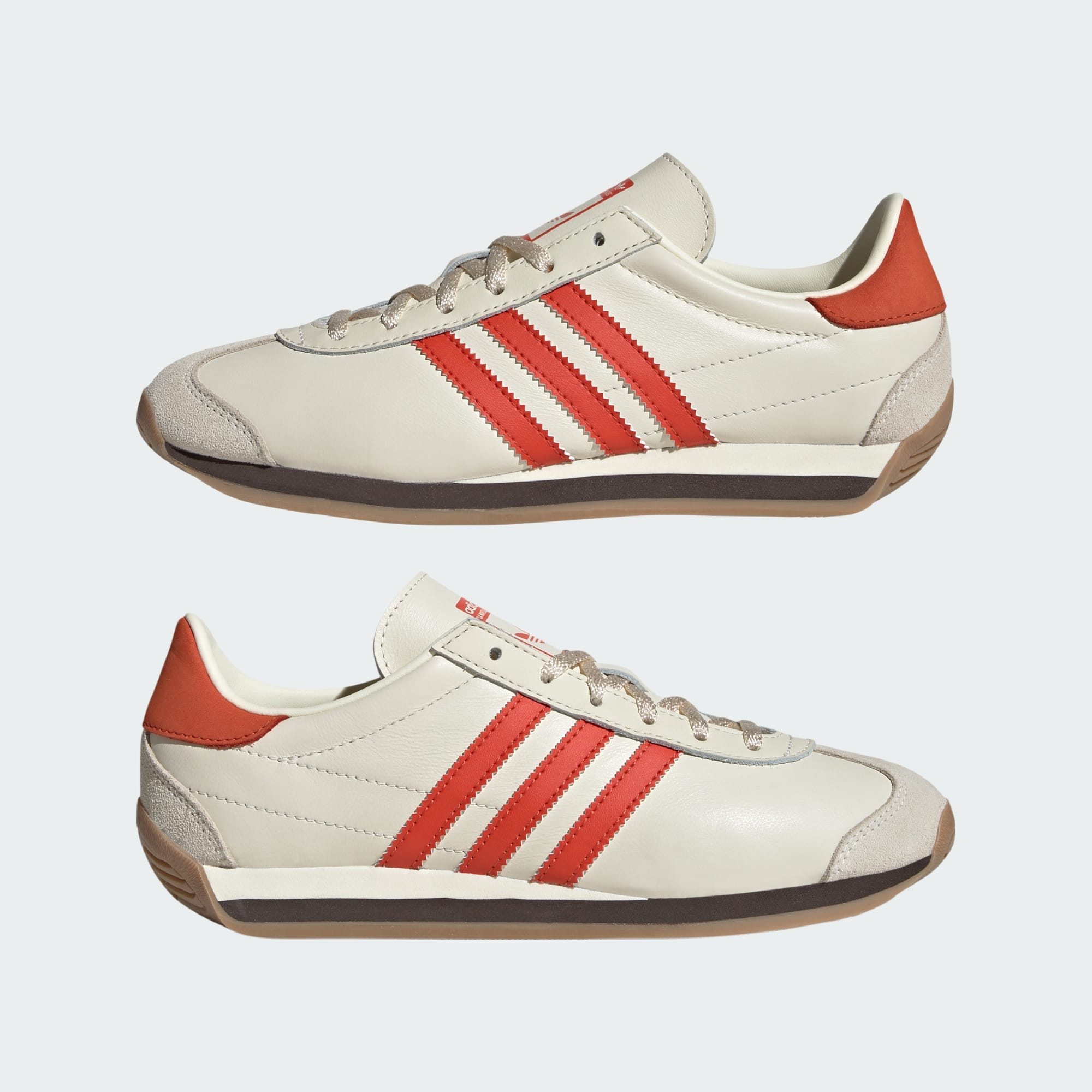 Country OG hyllar en löparikon från adidas. Ovandelen i mjukt läder har ett klassiskt T-format tåöverdrag, tandade 3-Stripes och matchande hälstycke för en retrolook med struktur. Det mjuka textilfodret ger en skön känsla medan mellansulan i EVA och den tunna gummiyttersulan ger ett supermjukt grepp. Country ingår i adidas Originals kollektion och blir snabbt en ny vardagsfavorit för äventyr till fots.