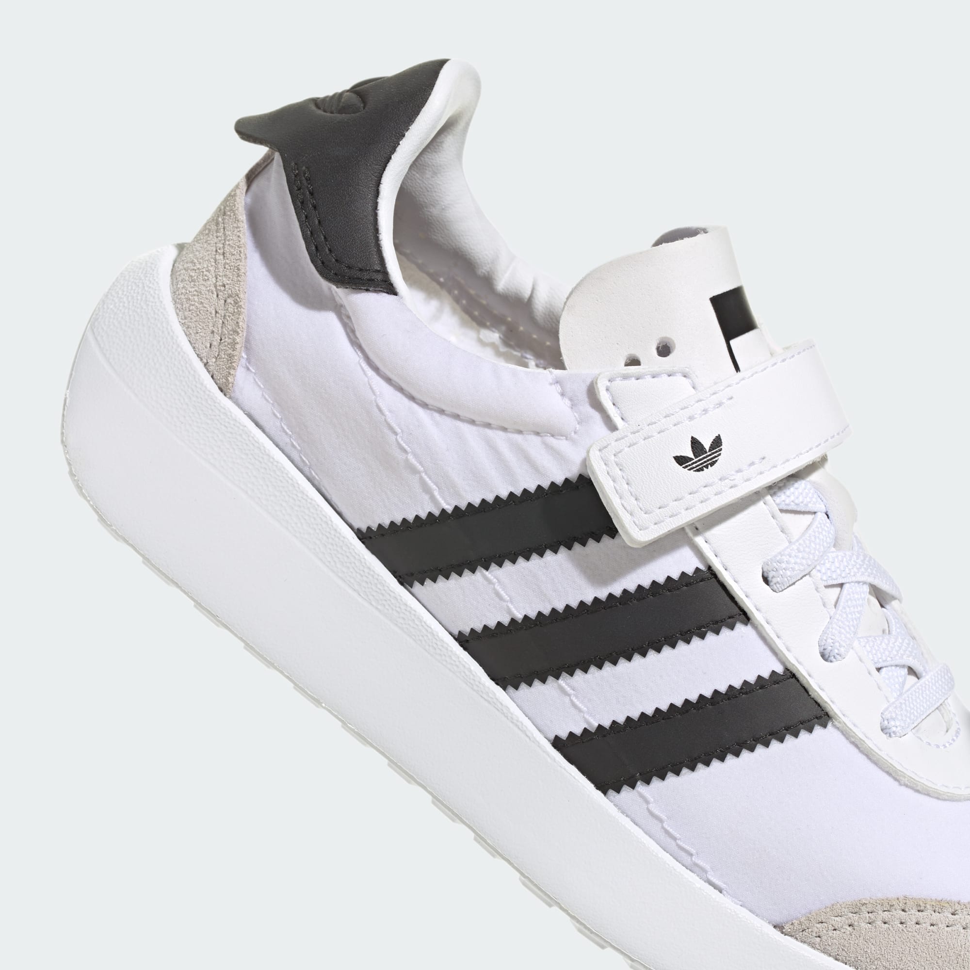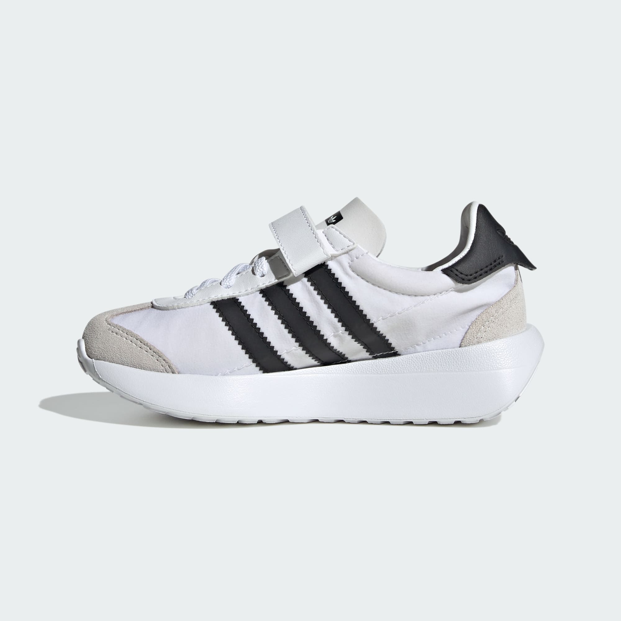 De här adidasskorna för barn är inspirerade av 70-talets Country OG och ger småttingen en retroinspirerad stil. Kardborreremmar ger enkel av- och påtagning, medan ovandelen i smidigt läder och syntetfodret ger komfort hela dagen. De här skorna är redo för alla äventyr oavsett om din lilla upptäckare är på väg till parken, leker i trädgården eller följer med dig på dina ärenden. Yttersulan i syntet ger bra grepp under spännande upptäcktsfärder.