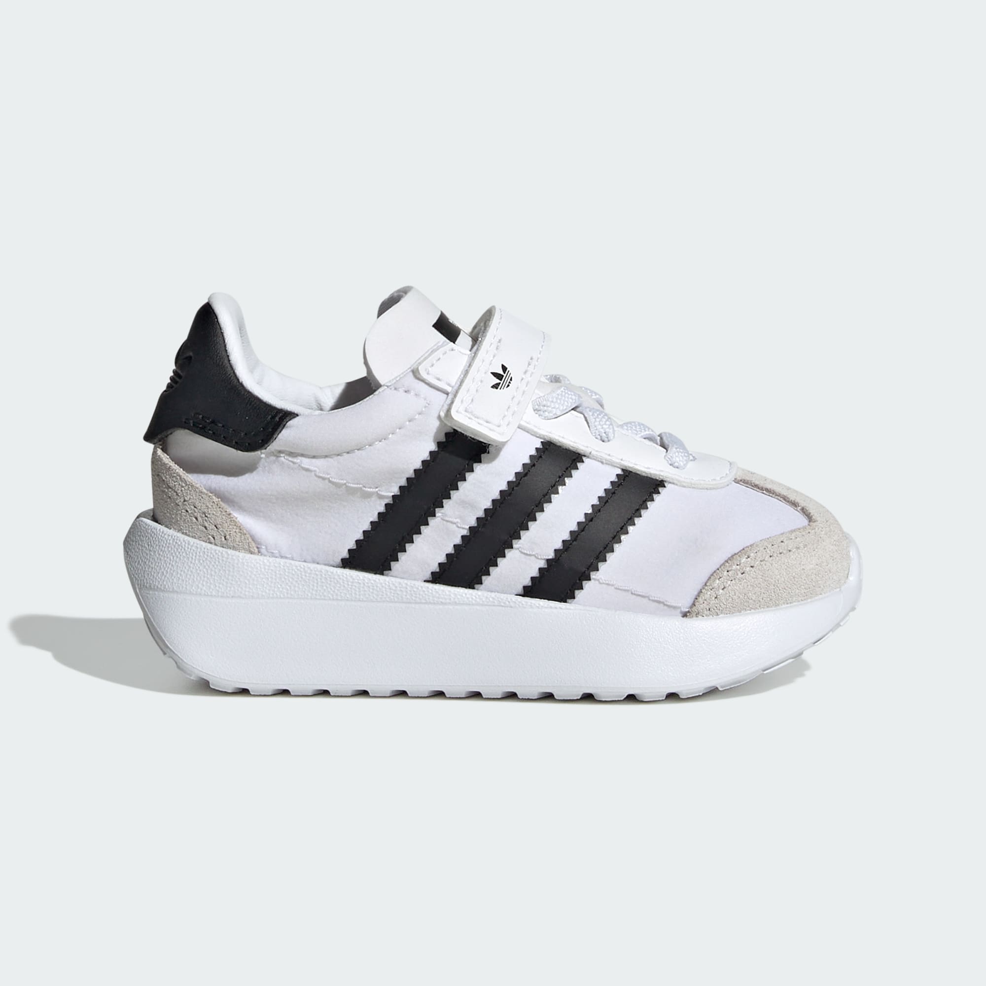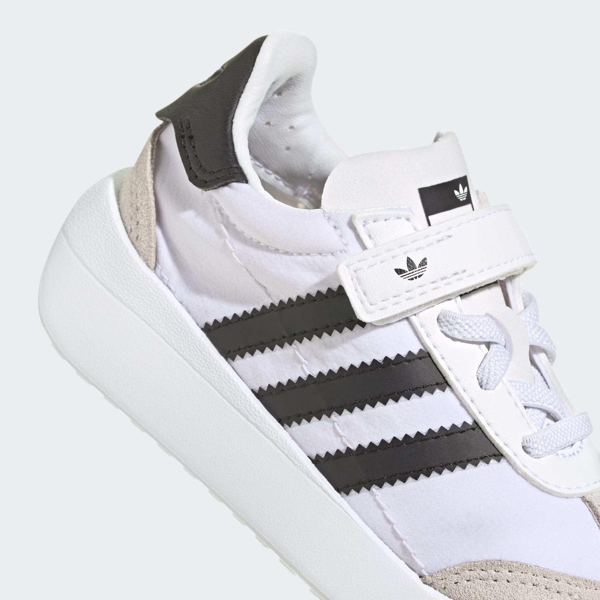 De här adidasskorna för småbarn lanserades 1972 och har en lätt konstruktion som revolutionerade löpningen. Den här versionen ger din lilla älskling en retroinspirerad stil. Kardborreremmar ger enkel av- och påtagning, medan ovandelen i smidigt läder och syntetfodret ger komfort hela dagen. Yttersulan i syntet ger bra grepp så att de kan hålla jämna steg med alla äventyr. De här skorna håller jämna steg med din lilla upptäckare.
