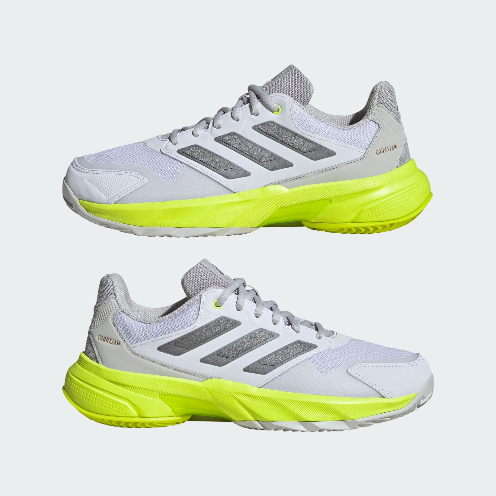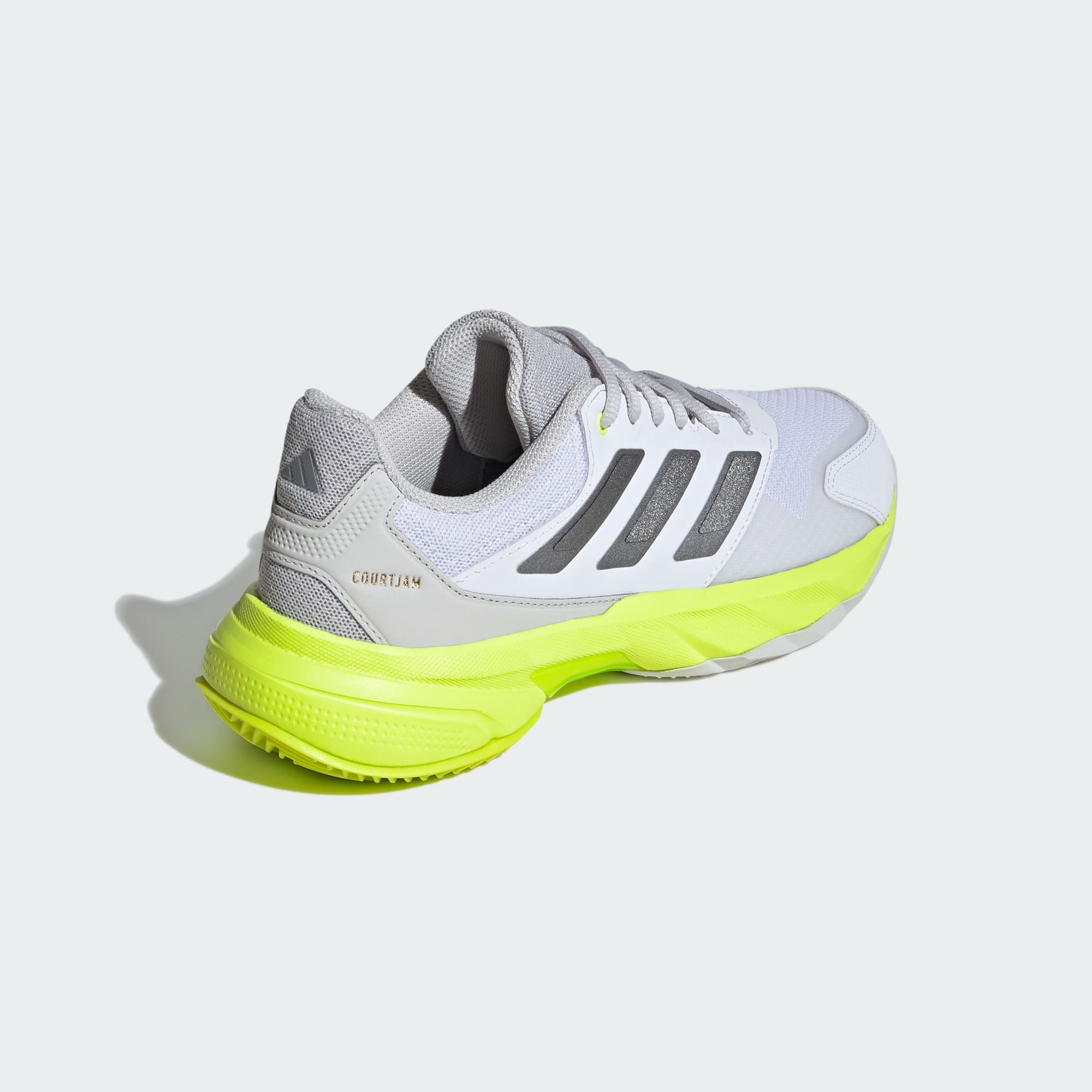 Komfort och kontroll på tennisbanan. Det är vad du får med de här Courtjam Control 3-skorna från adidas. Mellansulan i Cloudfoam ger lättviktsdämpning för ett mjukt och smidigt steg från första serve till matchboll. Ovandelen i mesh ser till att sval luft cirkulerar runt fötterna. Torsion System och Adiwear-yttersulan ger stabilitet för snabba vändningar och rotationer på grusbanor.