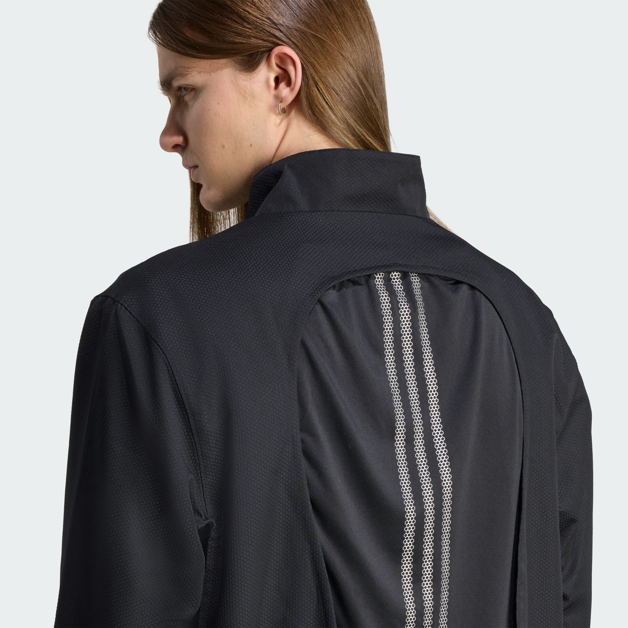 En löparinspirerad vindjacka med ventilerande detaljer.