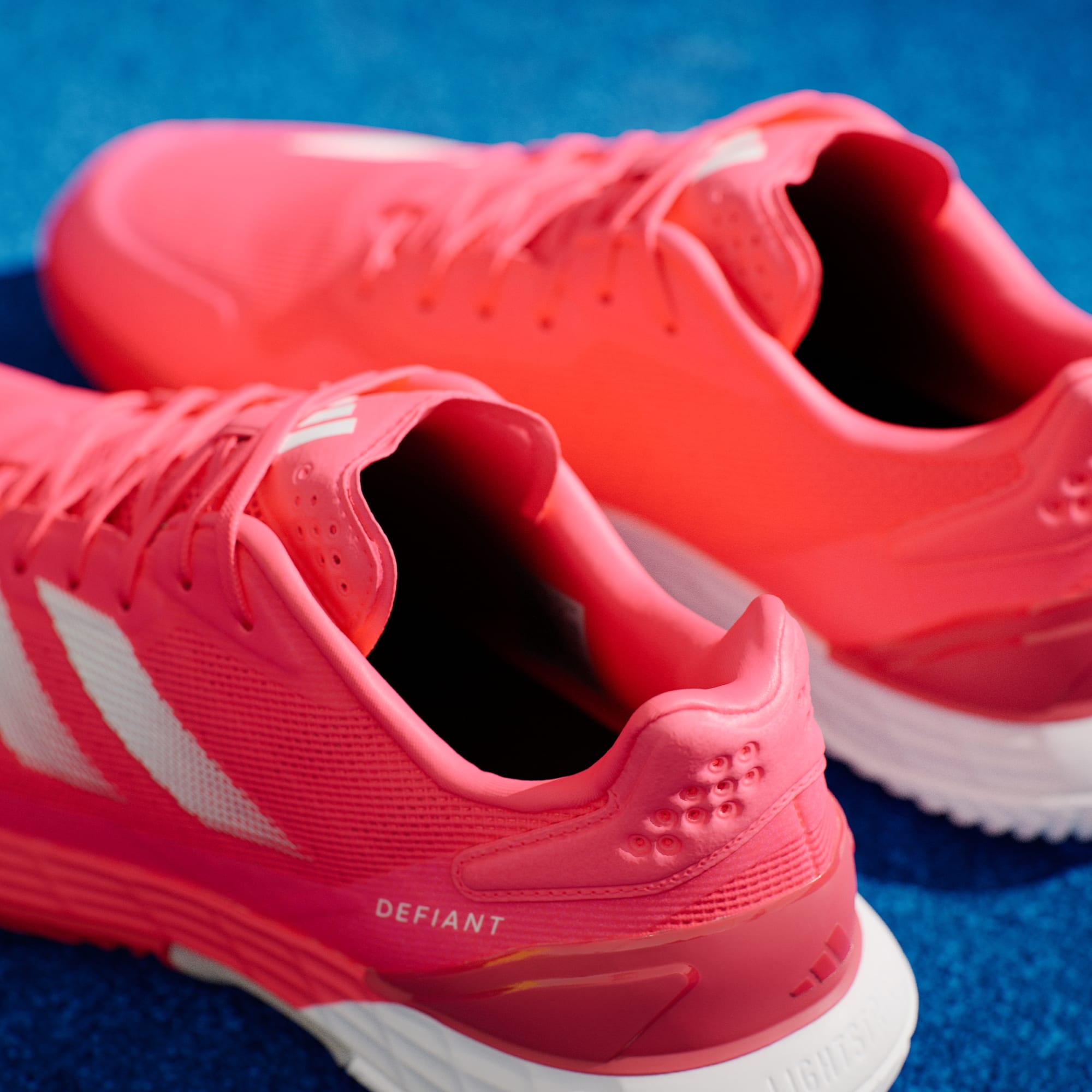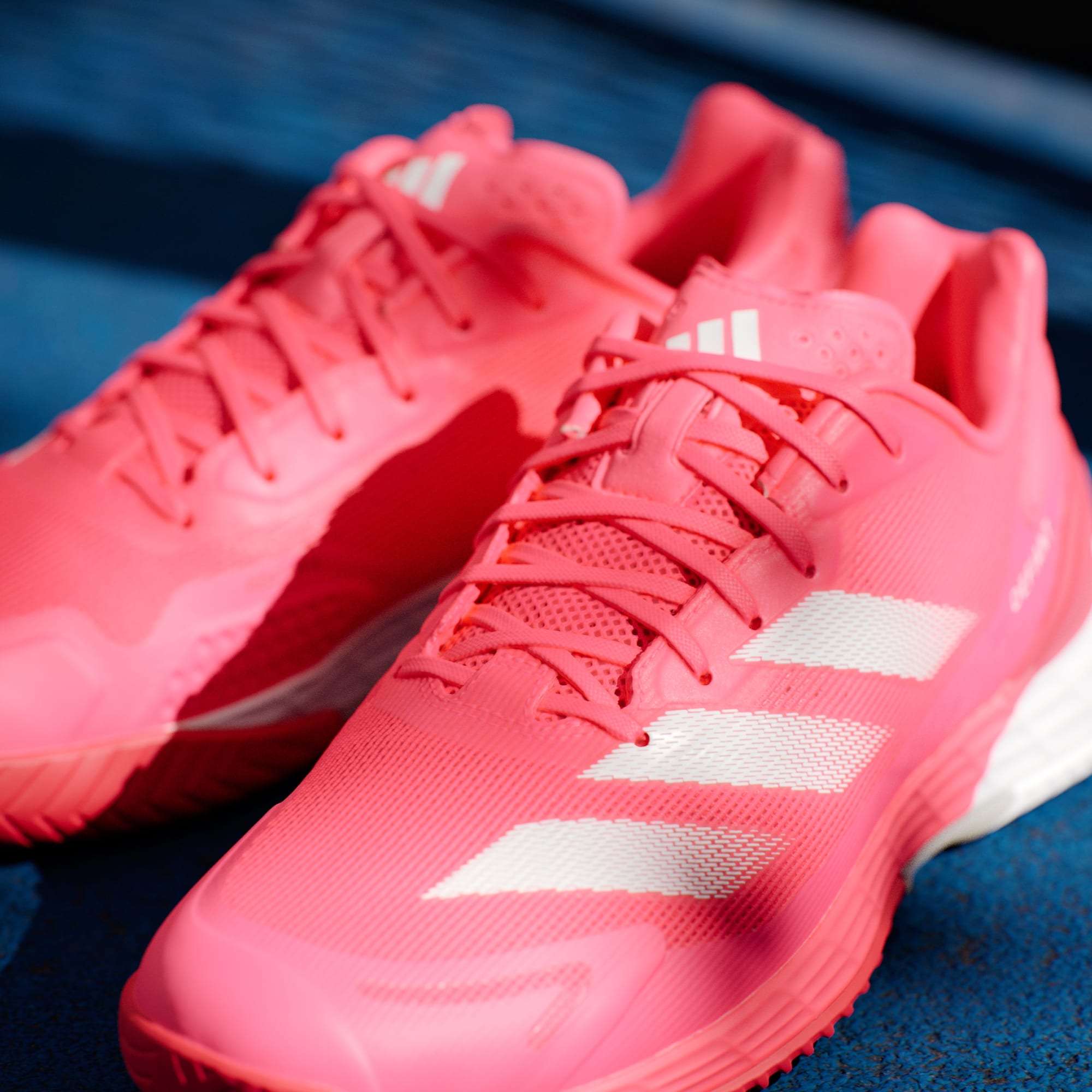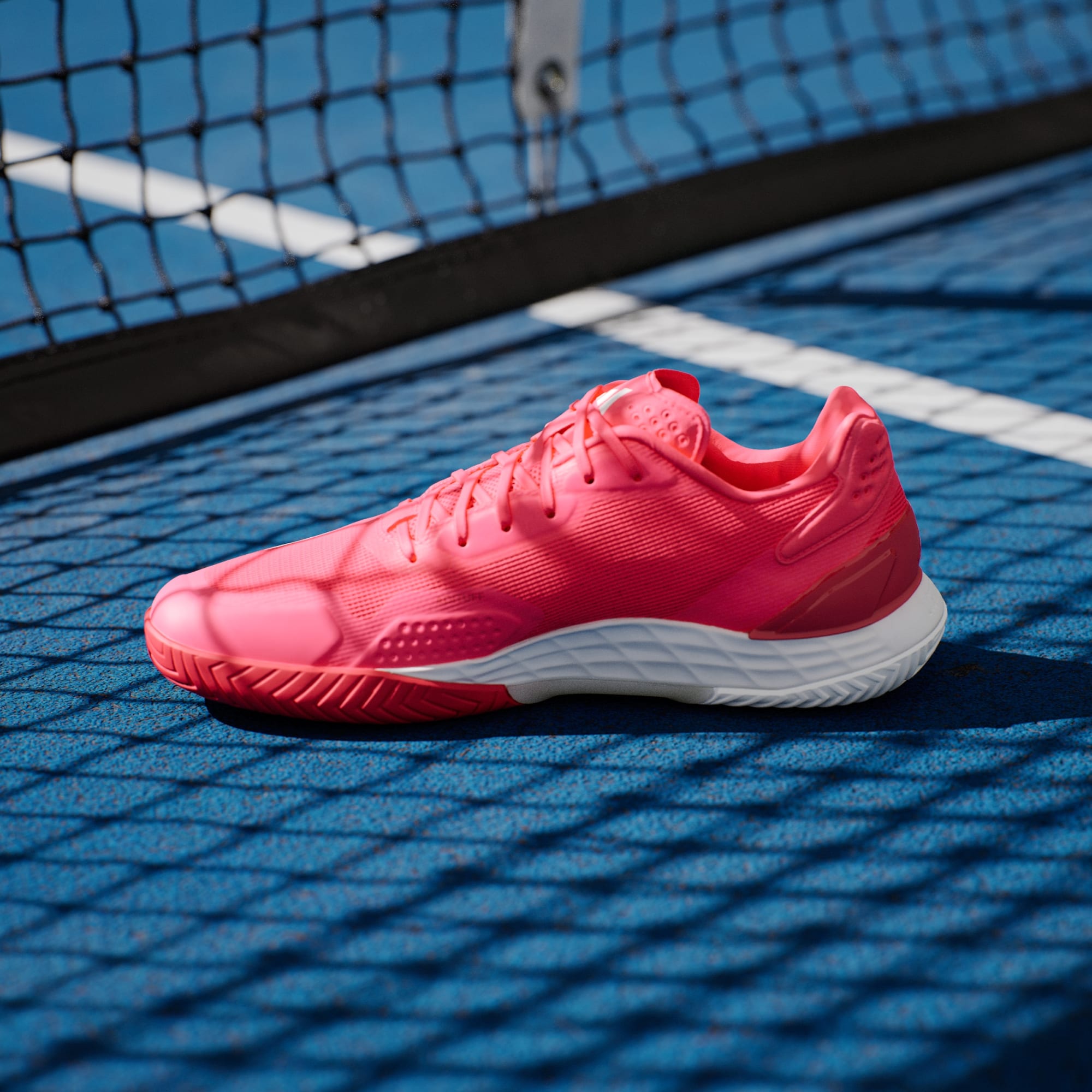 De här tennisskorna från adidas kombinerar viktiga element för att hjälpa dig att röra dig snabbt, från strategisk dämpning under foten till en slitstark yttersula. Lightstrike-mellansulan absorberar stötar i nedtrampet och ger en marknära känsla. Ovandelen i mesh låter luften cirkulera runt foten och TPU i hälen ger en säker passform. Dominera nätet eller spurta över baslinjen med lätthet.