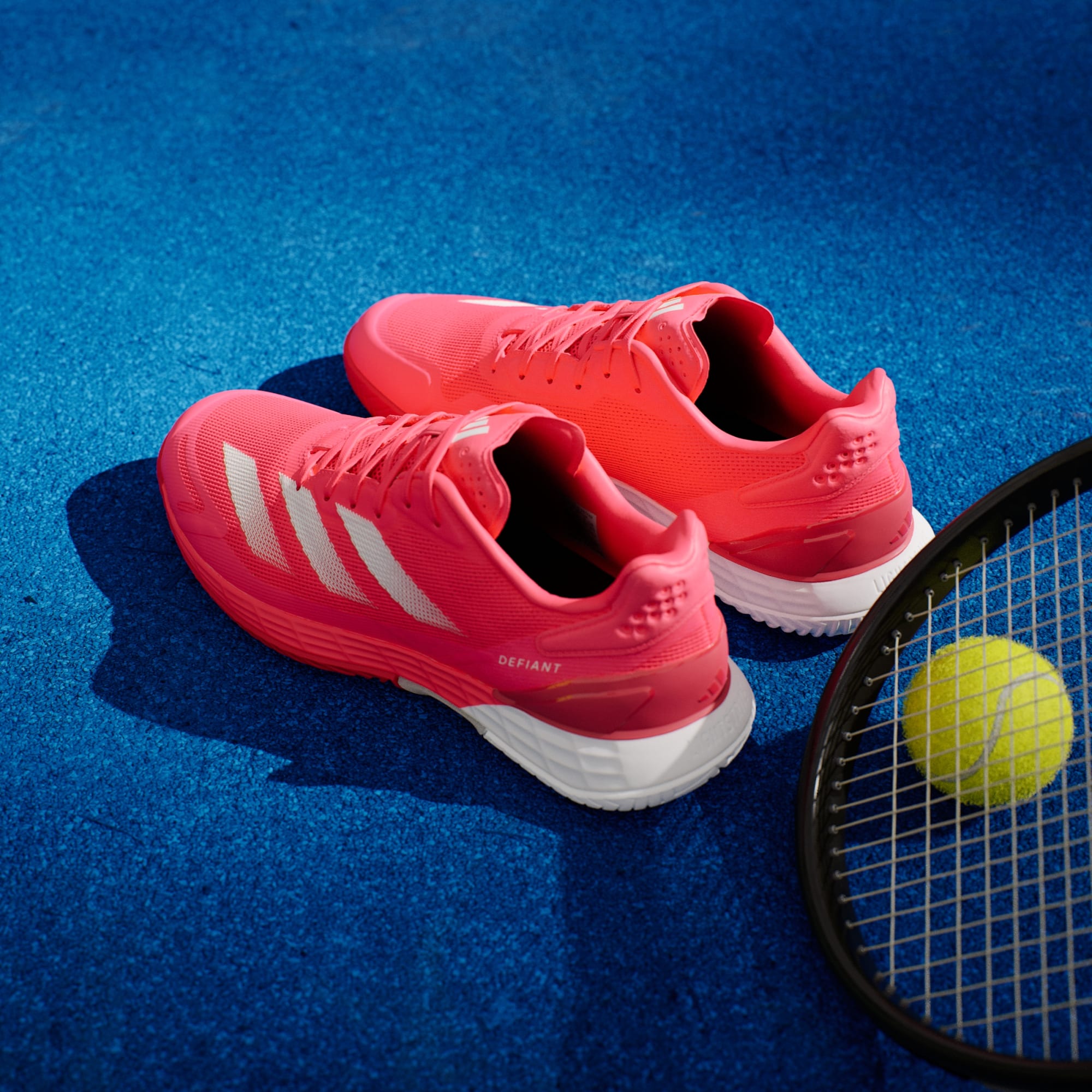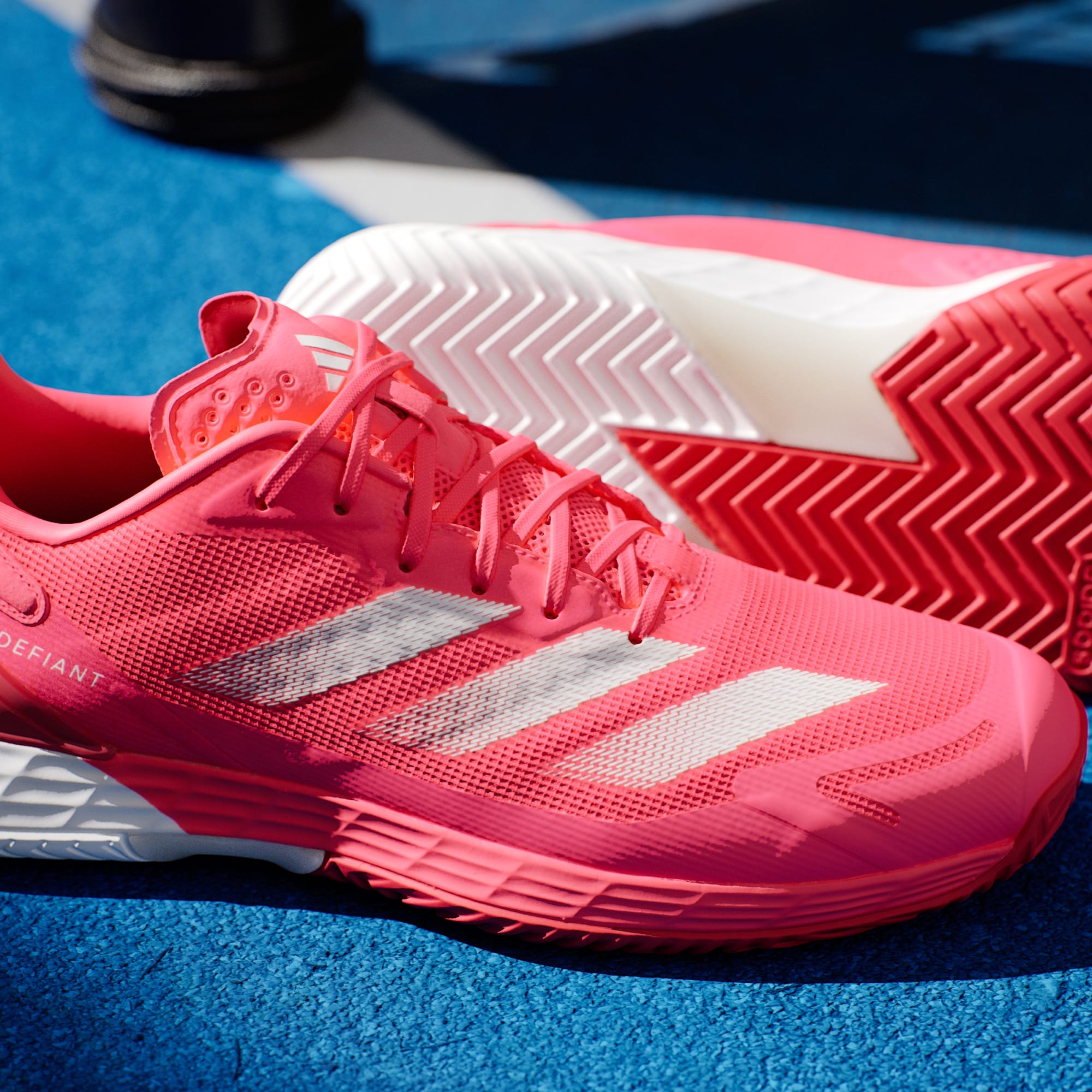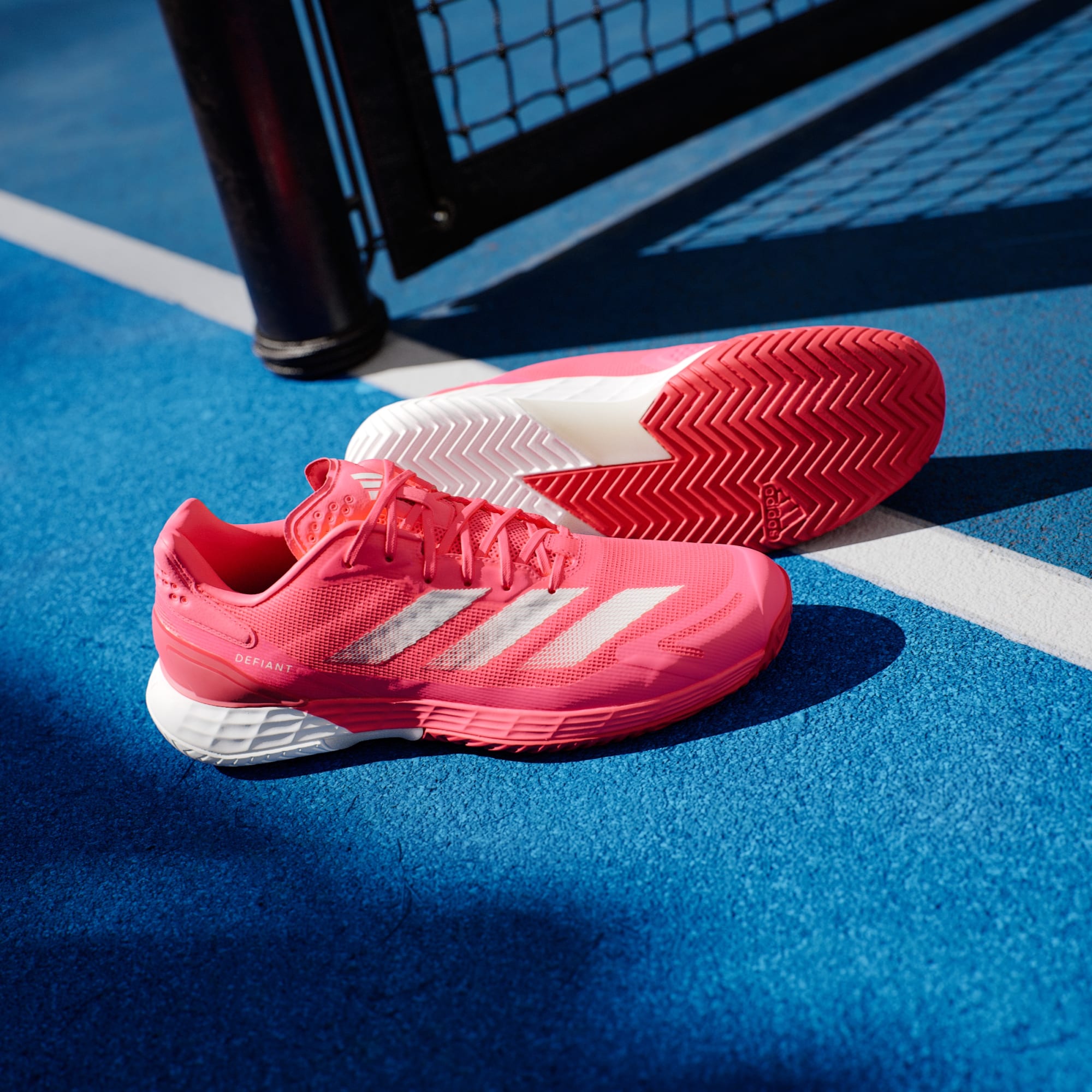 De här tennisskorna från adidas kombinerar viktiga element för att hjälpa dig att röra dig snabbt, från strategisk dämpning under foten till en slitstark yttersula. Lightstrike-mellansulan absorberar stötar i nedtrampet och ger en marknära känsla. Ovandelen i mesh låter luften cirkulera runt foten och TPU i hälen ger en säker passform. Dominera nätet eller spurta över baslinjen med lätthet.