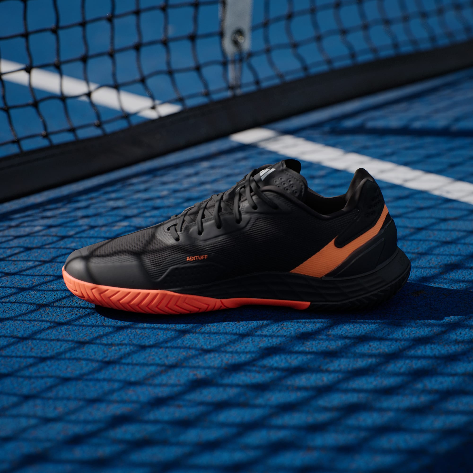 De här tennisskorna från adidas kombinerar viktiga element för att hjälpa dig att röra dig snabbt, från strategisk dämpning under foten till en slitstark yttersula. Lightstrike-mellansulan absorberar stötar i nedtrampet och ger en marknära känsla. Ovandelen i mesh låter luften cirkulera runt foten och TPU i hälen ger en säker passform. Dominera nätet eller spurta över baslinjen med lätthet.