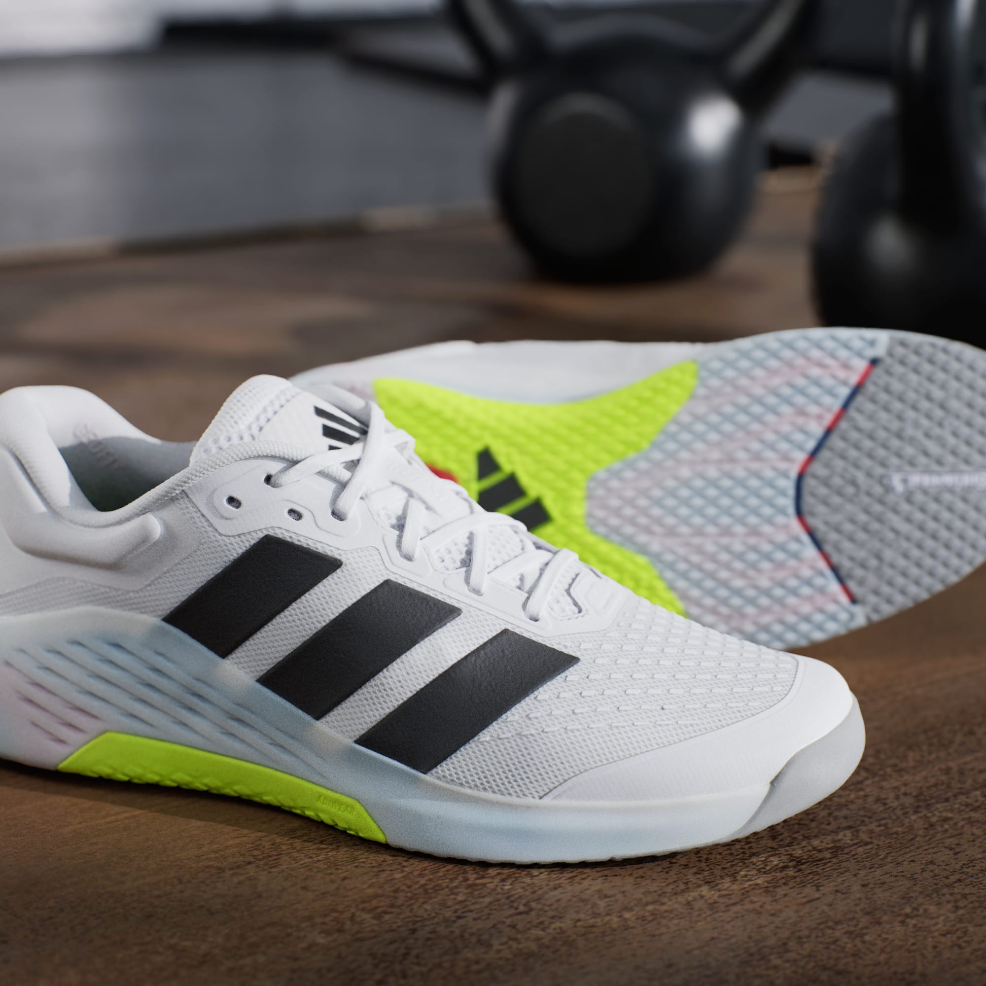 Träningsskorna Dropset 4 är ett självklart val för funktionell styrketräning. De här mångsidiga skorna ger kontrollerad stabilitet tillsammans med explosiv energi. De är ett smart val för fitnesstävlingar, styrketräning, muskeluthållighetsträning och korta löprundor. Mellansulan med Repetitor-skum i hellängd ger konsekvent energiåtergivning och stabilitet så du kan fortsätta din träning. De har Energyrods som ger stöd för hälen vid tunga lyft och en framåtdrivande känsla i framfoten för vertikala och linjära rörelser. Skorna har Geofit-teknik som ger extra hälstöd och en säker passform. Den ventilerande ovandelen har ett haptiskt tryck som ökar slitstyrkan. Den anatomiskt formade innersulan med Footadapt ökar kroppsmedvetenheten vid intensiva rörelser. Den multifunktionella yttersulan har både Continental™-gummi som ger grepp på vått och torrt underlag och Adiwear-gummi för slitstyrka. De här adidas-skorna ger stöd i varje rörelse för allt från repklättring till boxhopp.