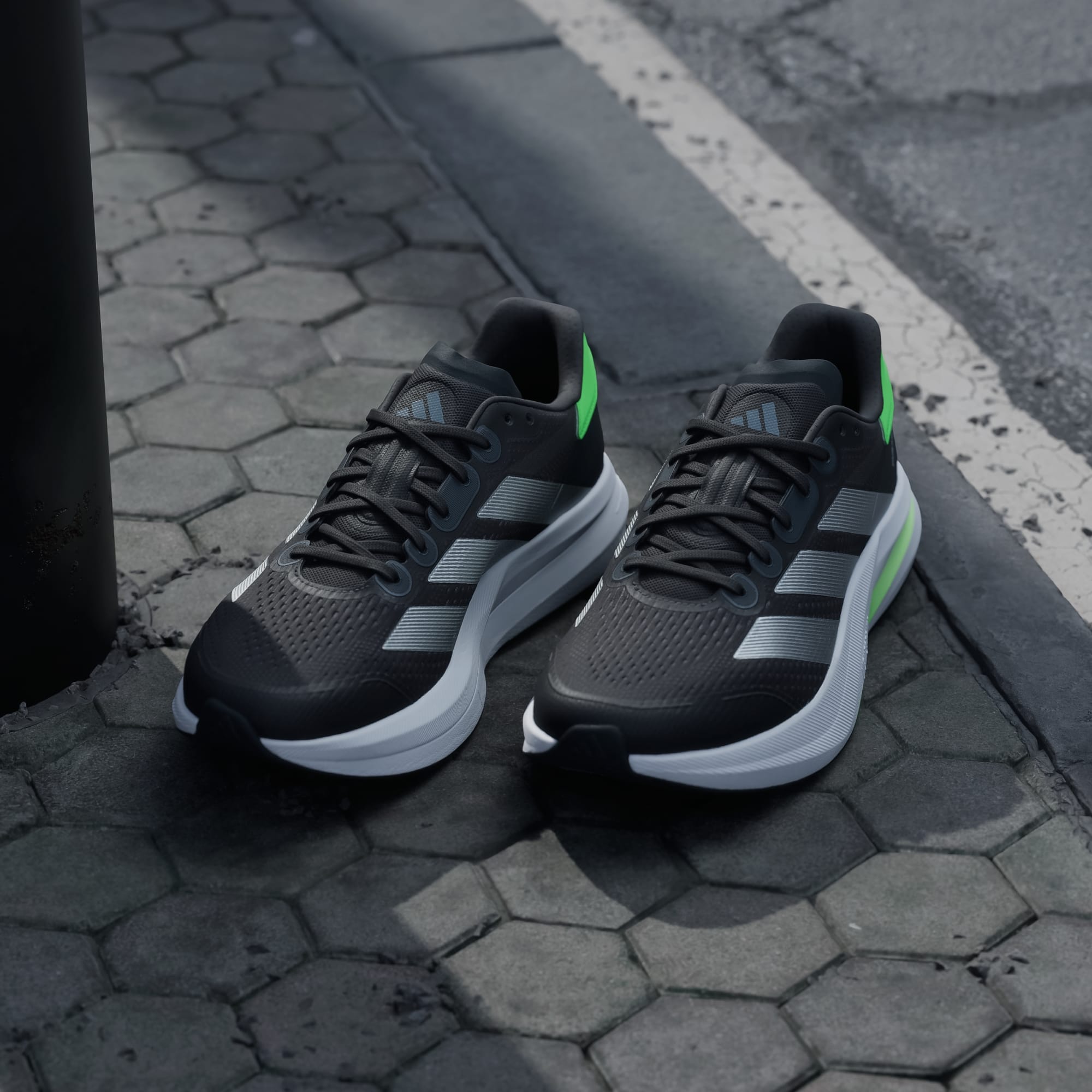 De här löparskorna från adidas hjälper dig att träna med ett syfte, oavsett om det står nytt löparmål eller 10 km på schemat. De är lätta och snabba med responsiv Lightstrike-dämpning och en yttersula i TPU ger grepp på vägar och stigar. Den välarbetade ovandelen i mesh är ventilerande och stödjande, så att du kan fortsätta att öka takten.