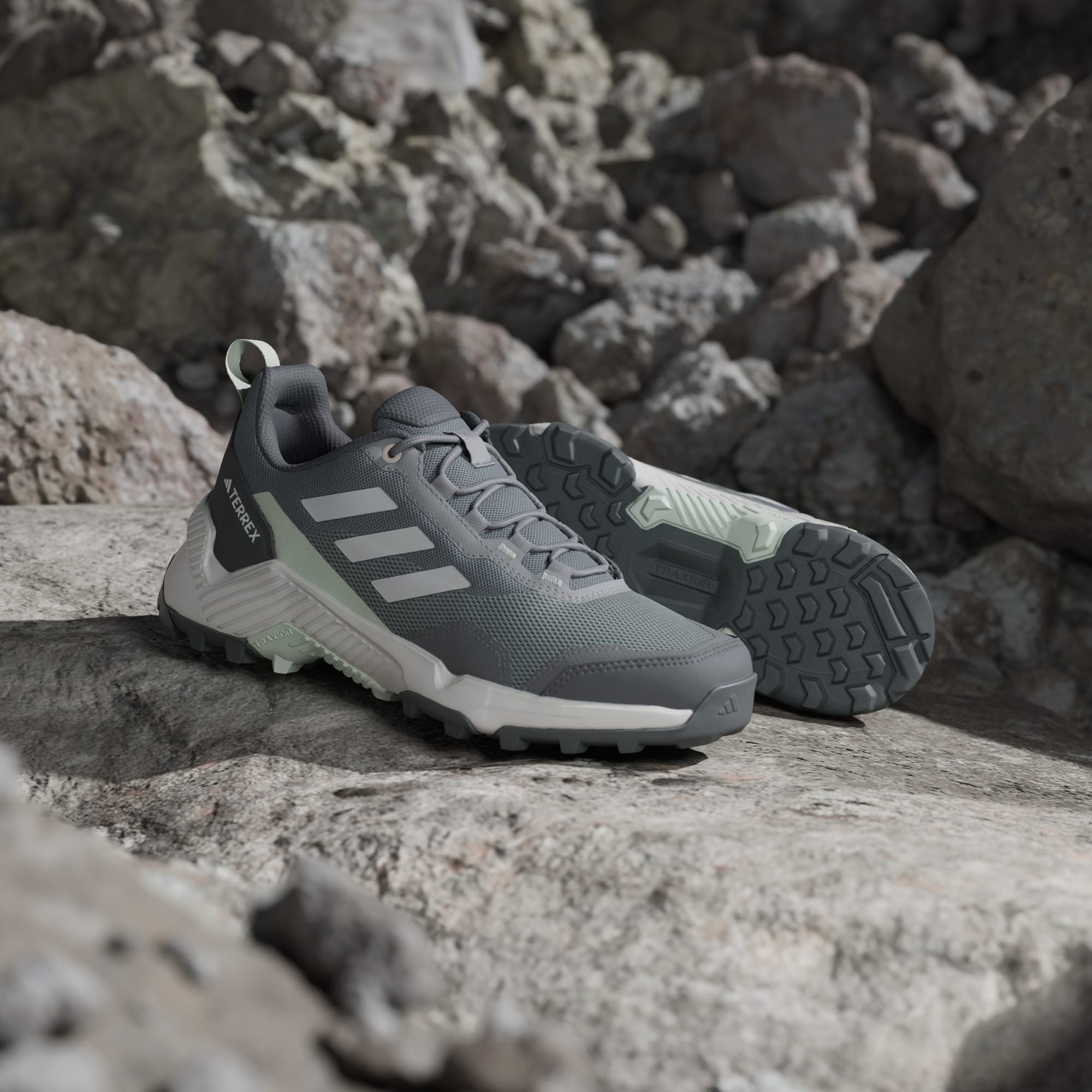 Njut av utsikten. Vandra till ett vattenfall. Strosa genom staden. Upplev den ultimata känslan av frihet och komfort i de här vandringsskorna från adidas. Slitstarka överdrag på den andningsbara meshöverdelen står emot slitage från stora äventyr, medan lättviktsdämpning håller dig bekväm hela dagen. Traxion-yttersulan ger säkra steg även i tuff terräng.