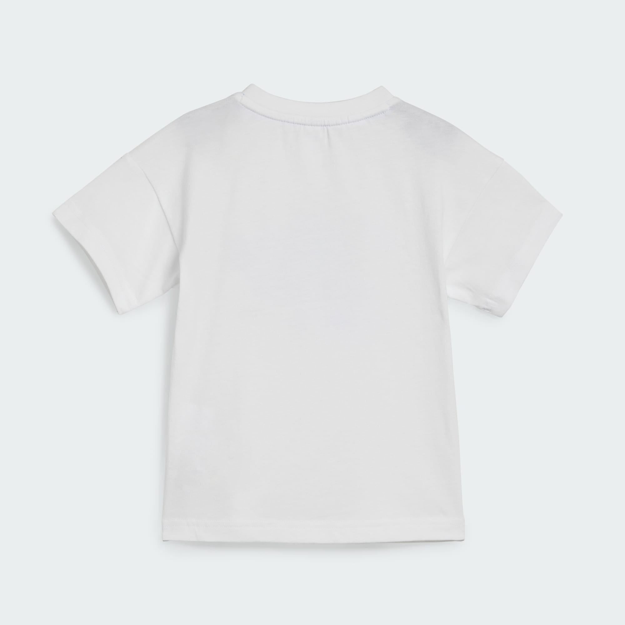 Det här adidas-setet för baby kombinerar komfort och söt stil. T-shirten i bomullstrikå har ett kul frukttryck och de mjuka shortsen pryds av ikoniska 3-Stripes. En justerbar midja ger en passform som sitter på plats. Detta set passar perfekt oavsett om din lilla älskling tittar på tecknad film i soffan eller leker i trädgården. Bomullen i den här produkten har hämtats via Better Cotton. Better Cotton använder en modell som kallas massbalans. Det betyder att Better Cotton inte fysiskt kan spåras tillbaka till slutprodukten. Läs mer här: https://bettercotton.org/who-we-are/our-logo/