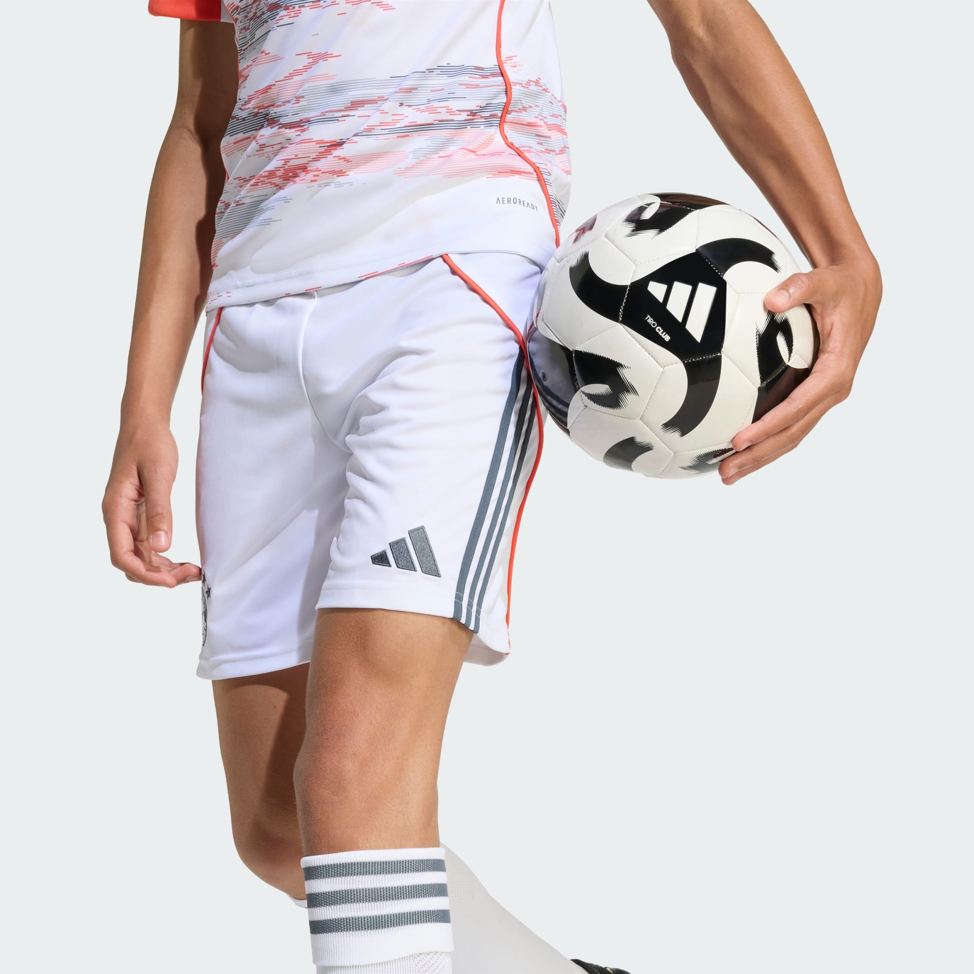 I två årtionden har Allianz Arena banat väg för seger för Bayern Münchens fans. De här fotbollsshortsen för juniorer ingår i ett bortaställ som hyllar klubbens världskända hem och är gjorda i mjukt material med AEROREADY som håller dig torr och bekväm. Oavsett om du stöttar ditt lag på arenan eller i soffan visar ett broderat lagemblem din lojalitet.