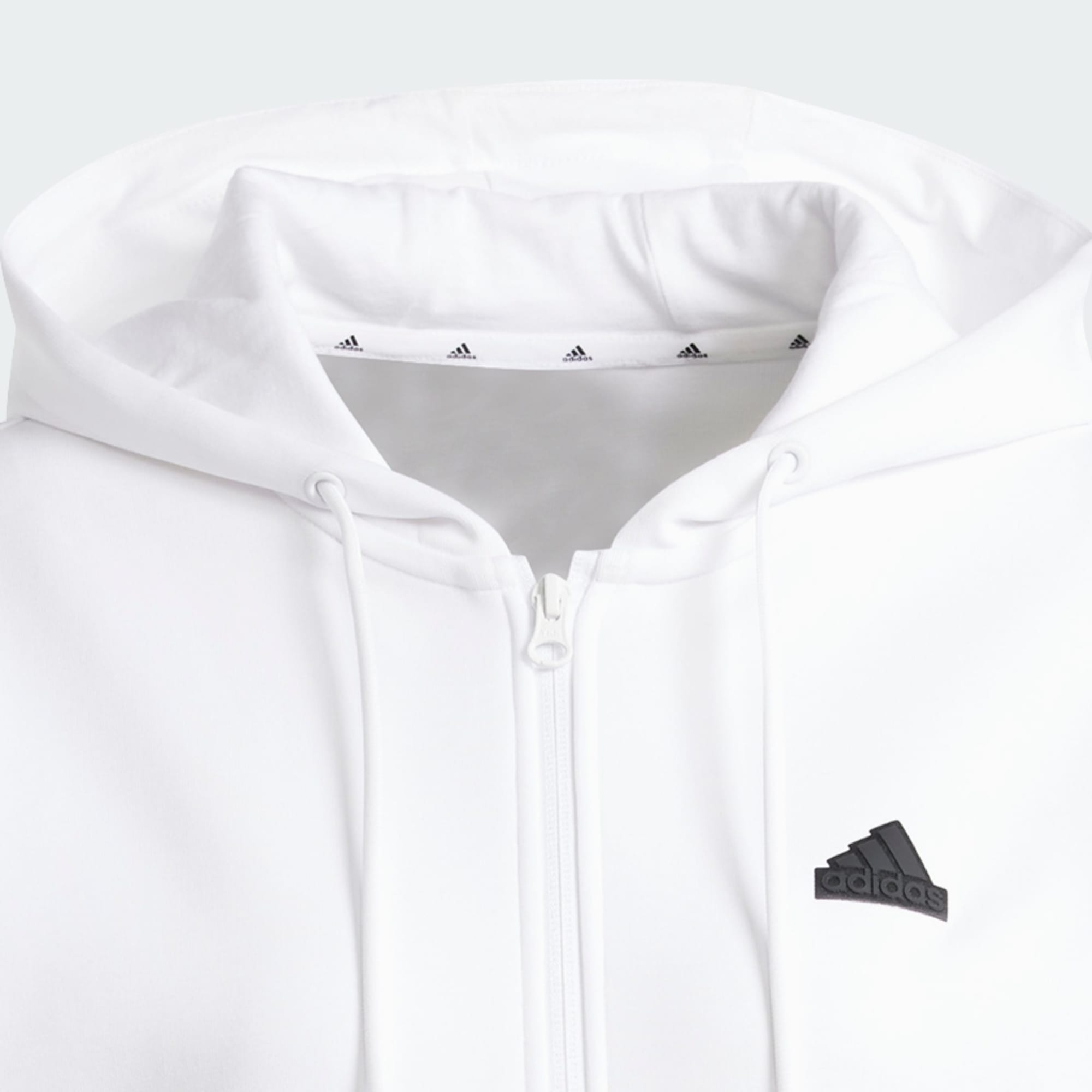 - Hel dragkedja och huva som justeras med dragsko