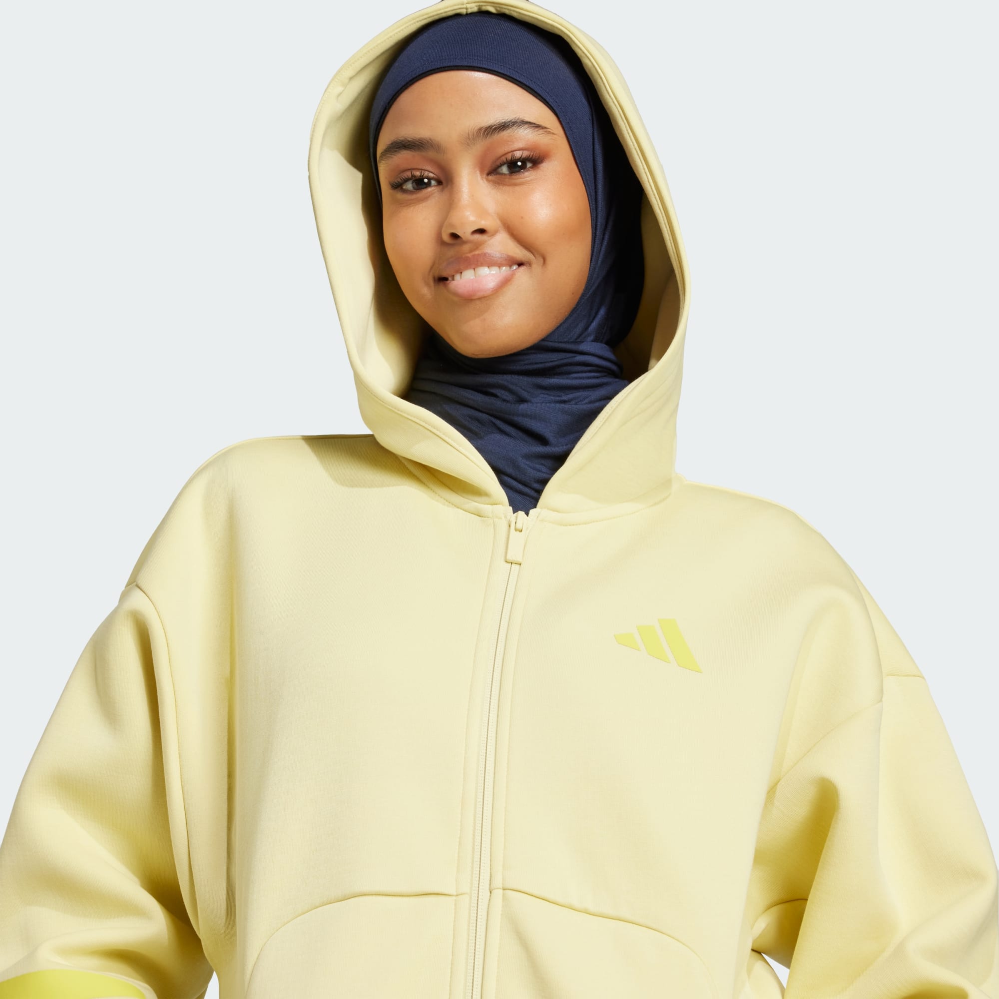 Den här huvtröjan från adidas omsluter dig med komfort. Bomullsblandningen känns mjuk mot huden och den lediga passformen ger rörelsefrihet. Ribbade detaljer på muddarna och kängurufickor fulländar looken. Dra upp dragkedjan och låt moderna 3-Stripes på ärmarna visa din kärlek till sport. Genom att välja återvunnet material kan vi återanvända material som redan har skapats, vilket hjälper att minimera avfall. Val av förnybara material hjälper oss att minska vårt beroende av ändliga resurser. Våra produkter tillverkade av en blandning av återvunna och förnybara material innehåller minst 70 % av dessa material.
