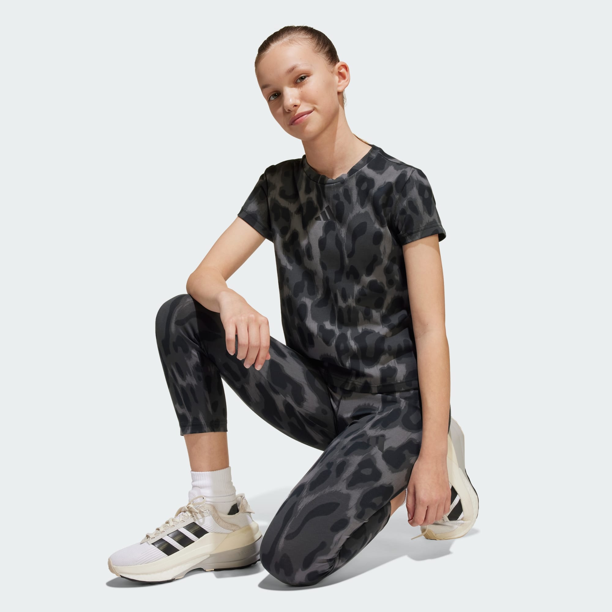 När din dag blir hektisk vill du ha en outfit som hänger med. Dessa leggings från adidas för juniorer är gjorda för just det. Den mjuka, stretchiga modellen och den moderna längden på sju åttondelar passar bra till allt från stora huvtröjor till t-shirts i crop-modell. Ett heltäckande tryck ger en subtil men ändå stilriktig touch.