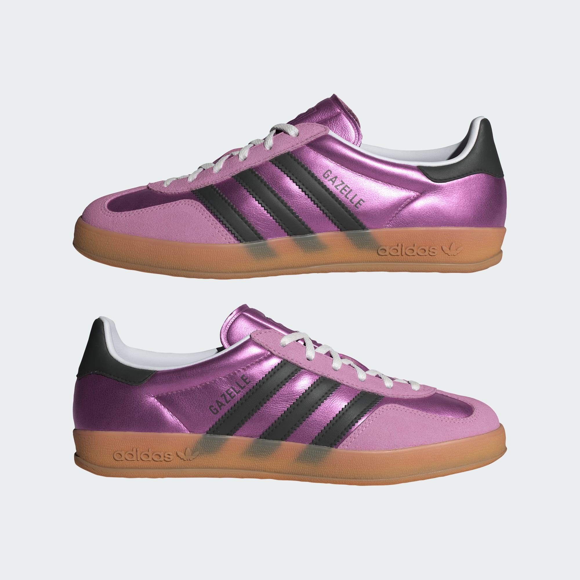 Gazelle-skorna från adidas skapades ursprungligen för inomhusidrottare, men har sedan dess blivit en stilikon. Dessa Gazelle inomhusskor har en ovandel i metallic-färgat läder, för en fräsch variant av en traditionell design. Gummiyttersulan i kombination med syntet- och textilfodret ger komfort hela dagen. Skornas 70-talsinspirerade retrodesign passar till vilken outfit som helst.