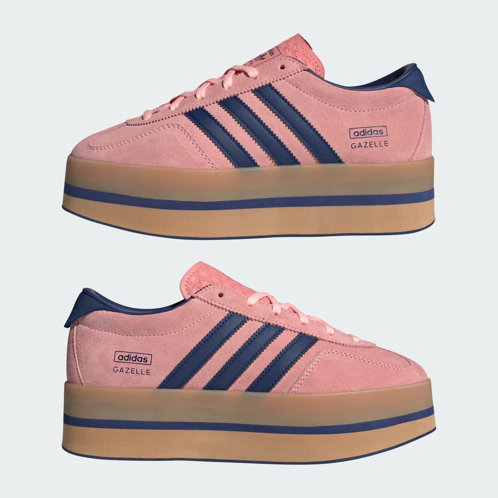 Oavsett om du utforskar staden eller besöker dina favoritplatser ger Gazelle Stack-skorna en förfinad look. Gazelle Stack har gått från en ikonisk träningssko till ett iögonfallande modestatement. Mellansulan har flera lager av formgjuten EVA för en superhög platåsula. Ovandel i smidigt läder, mockadetaljer och halvgenomskinlig sulkant ger retrokänsla. Visa upp ikonisk adidas Originals-stil vart dagen än tar dig.