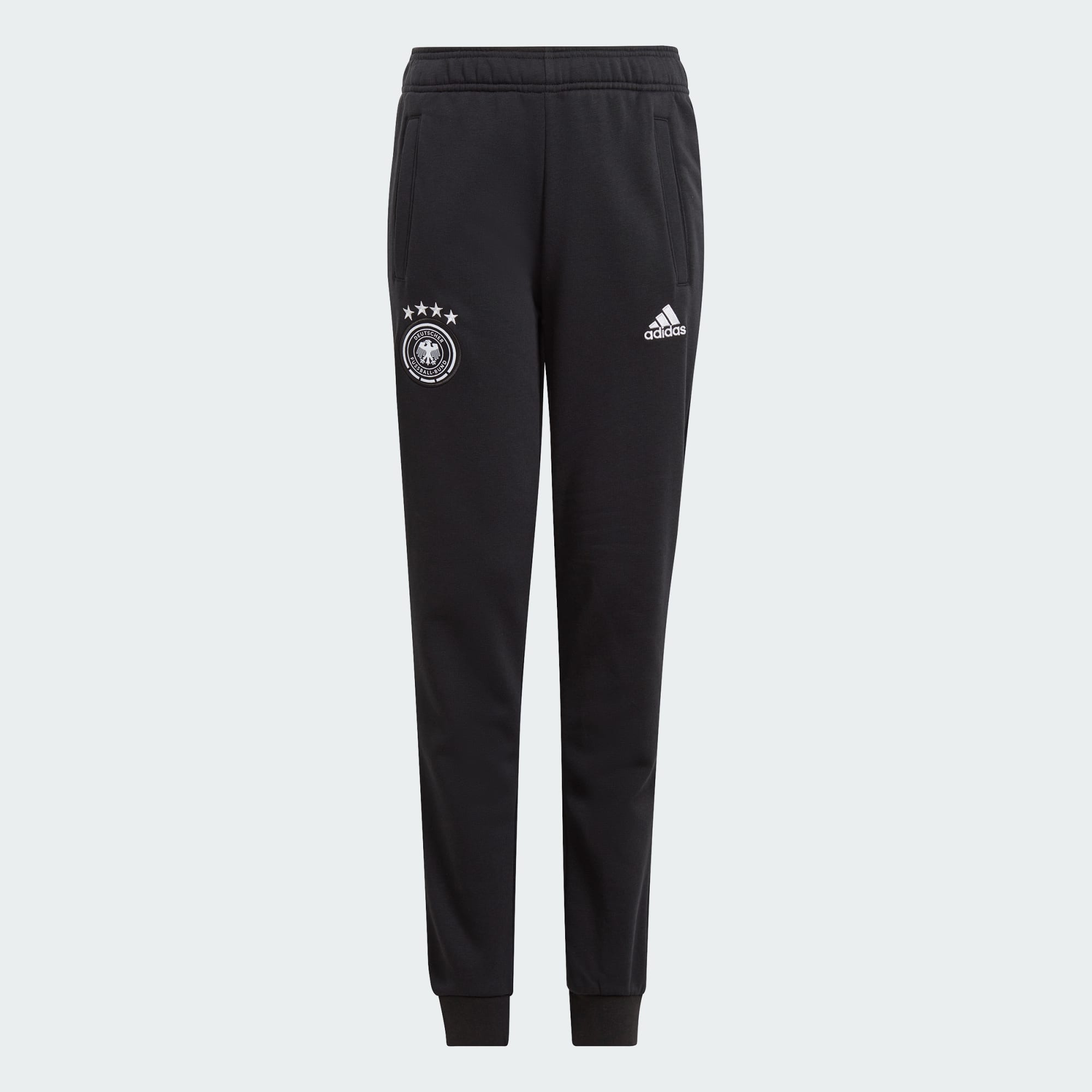 Heja på det tyska landslaget med stil. De här träningsbyxorna för juniorer från adidas lånar välbekanta färger för att lyfta fram ditt stöd. Den mjuka bomullsblandningen och de ribbade muddarna håller benen varma och bekväma oavsett om du tittar på en match eller slappar hemma. En broderad laglogga ser till att du visar upp din stolthet över laget i varje steg. Genom att välja återvunnet material kan vi återanvända material som redan har skapats, vilket bidrar till att minska avfallet. Val av förnybara material hjälper oss att minska vårt beroende av ändliga resurser. Våra produkter tillverkade av en blandning av återvunna och förnybara material innehåller minst 70 % av dessa material.
