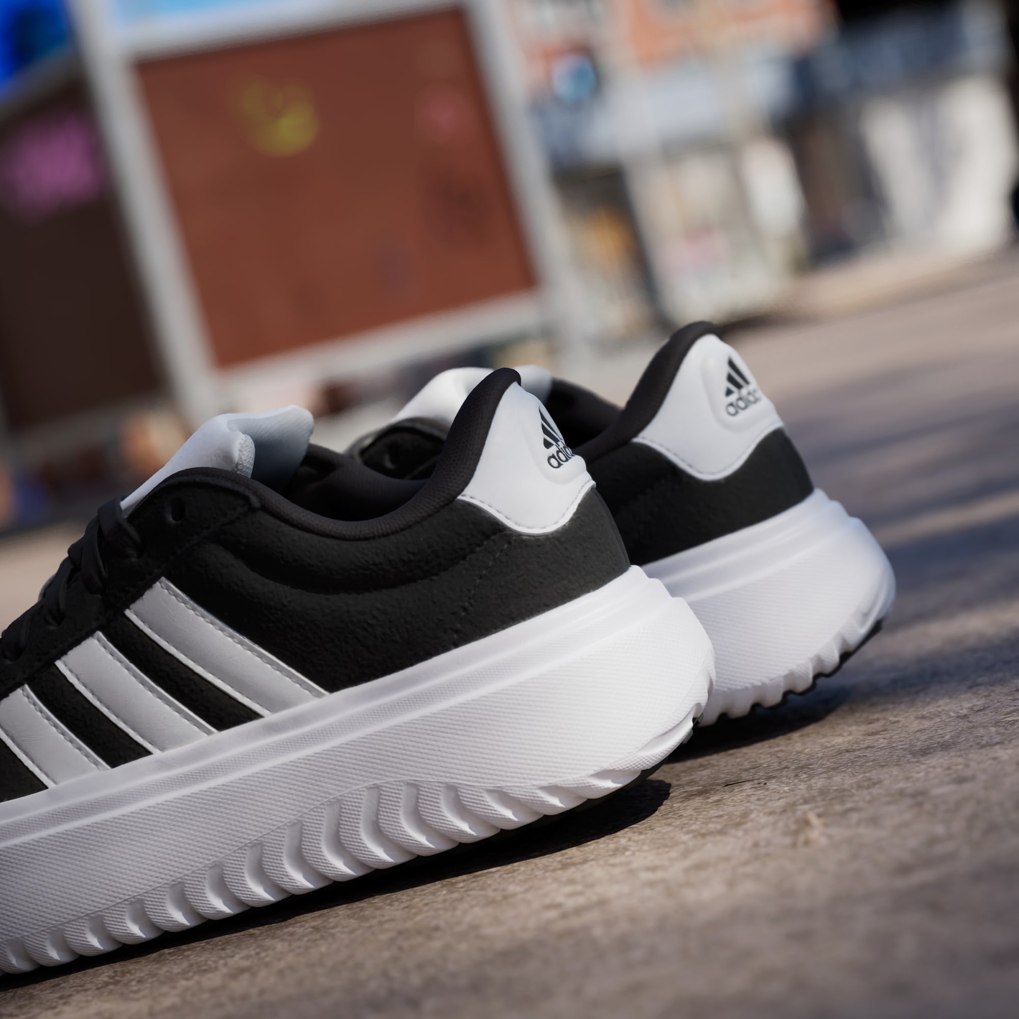 När du snörar på dig de här skorna från adidas kan du riktigt känna energin från tennismatcher. De har rötterna i 70-talets sportstil, men du behöver inte vara på tennisbanan för att bära dem. En mjuk Cloudfoam-plattform lyfter syntetovandelen och ger total komfort i varje steg.