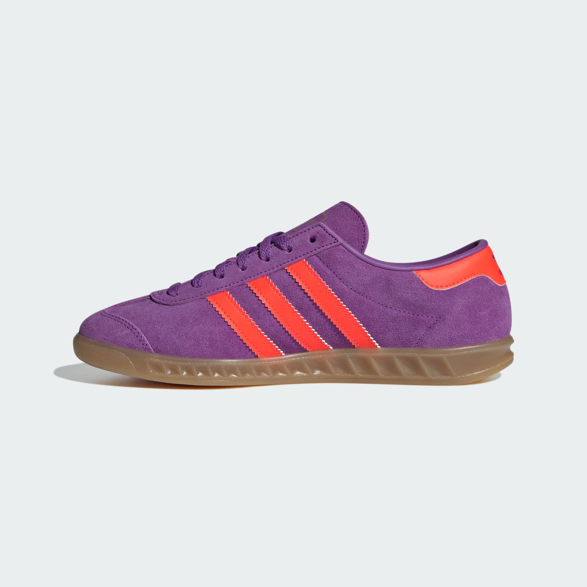 En klassiker återvänder. Hamburg-skorna från adidas lanserades ursprungligen 1982 och var visionära sneakers för sin tid. Nu för tiden är de redo att gå sin egen väg och sätta trender på streetwear-scenen. De är gjorda i förstklassigt läder med en dubbelsydd T-formad tå och kontrasterande hälflik och 3-Stripes som ger retrostil med en modern touch. Gummiyttersulan med låg profil, gjutna sidor och mönstrat grepp ger stadiga steg. Hamburgs mångsidiga vardagsstil och sportiga stil har gjort dem till en adidas Originals-favorit i över 40 år. Matcha med jeans, capribyxor med vida ben eller en kjol för att fullända din look med klassisk adidas-stil.