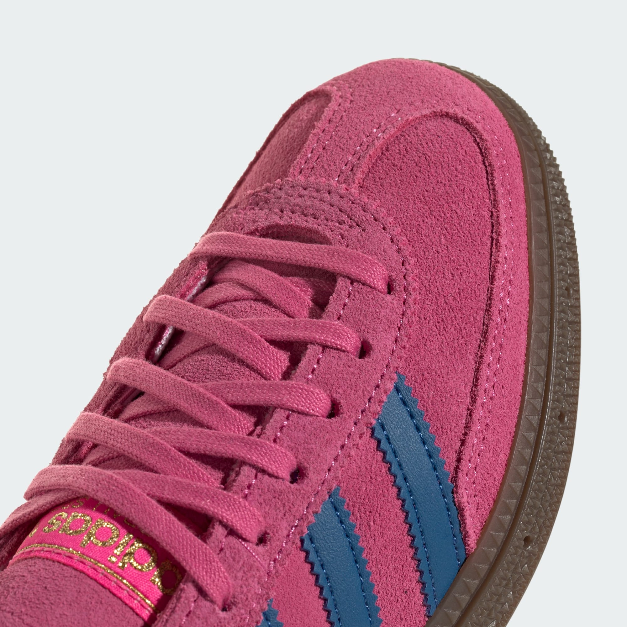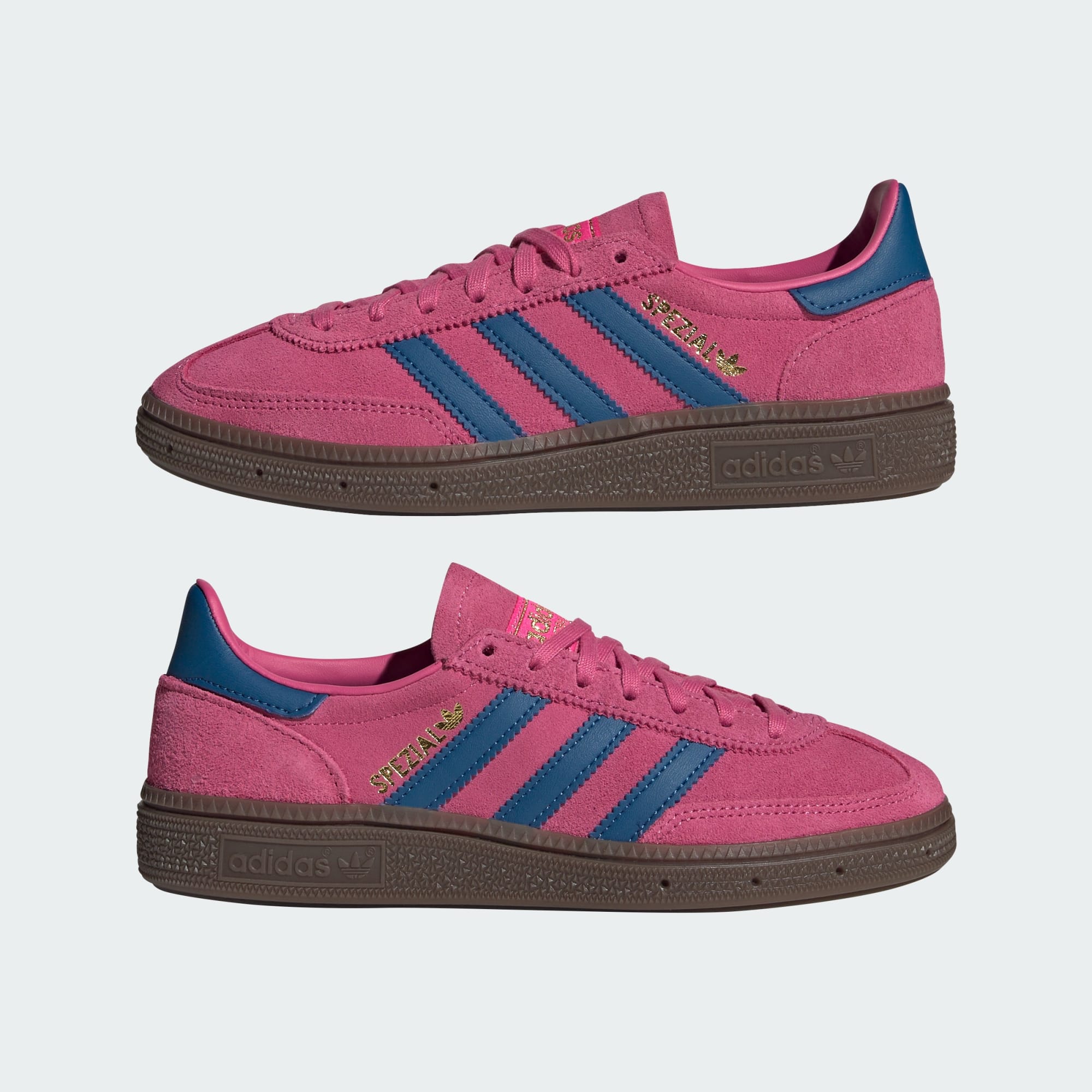 Snöra på dig ett par Handball Spezial-skor från adidas Originals för en retroinspirerad look som passar lika bra i skolan, som när du hänger med vänner. De här skorna för juniorer lanserades första gången 1979, och kombinerar en autentisk 70-talsdesign med modern komfort. Den färgstarka ovandelen i mocka ger en livfull look, medan koppsulan i gummi garanterat ett bra grepp på olika typer av underlag.