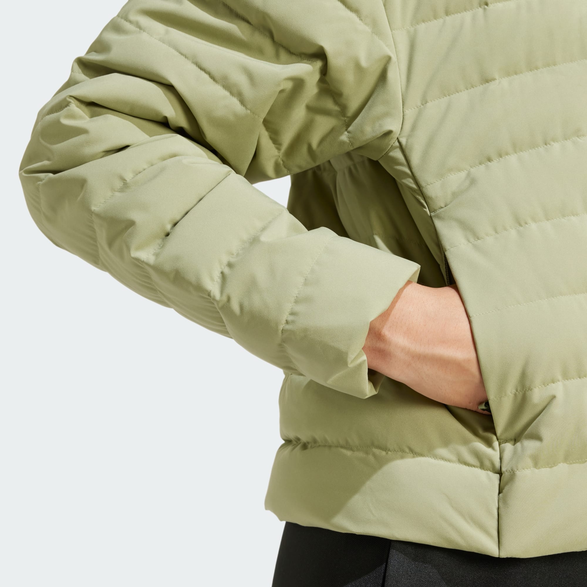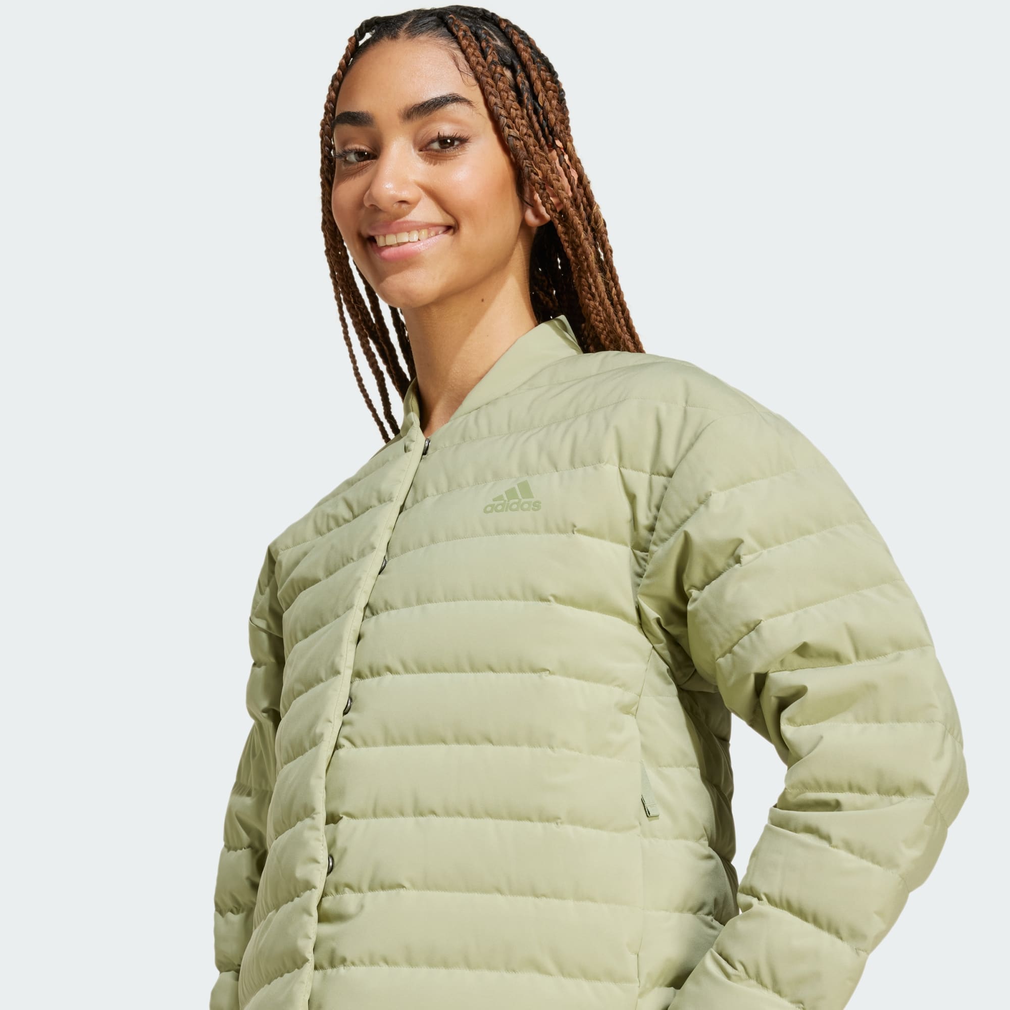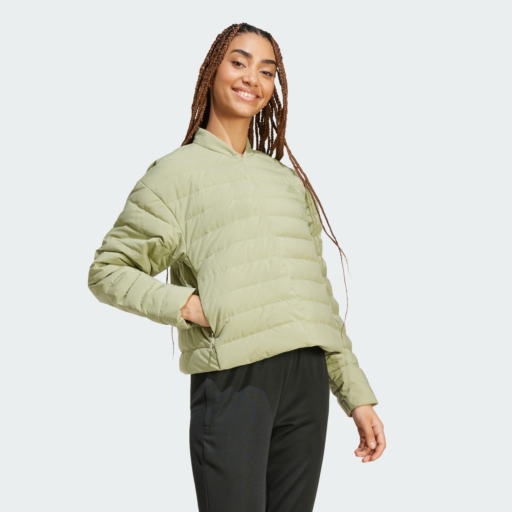 This lightweight down jacket provides effortless warmth whether you're exploring the city or spending time in nature. Zip up the stand-up collar on cold days and keep icy gusts at bay. This adidas jacket has zip pockets to hold your phone, keys and anything else you need. This product is made with 100% recycled materials. By reusing materials that have already been created, we help to reduce waste and our reliance on finite resources and reduce the footprint of the products we make.