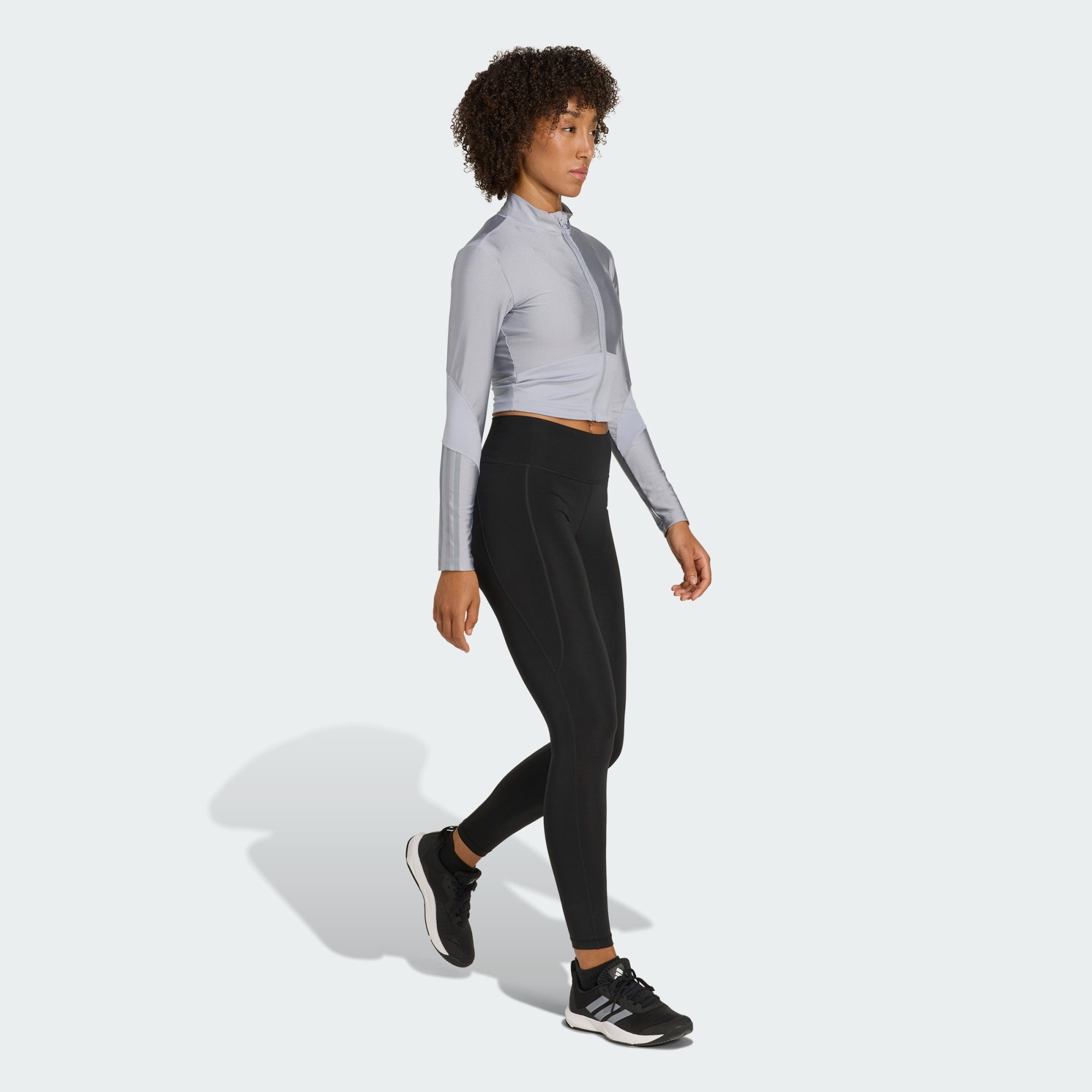 Lys upp på gymmet och i andra sammanhang i denna adidas-träningsställ. Denna långärmade tröja blandar högblanka och matta tyger för extra dimension. Dra upp dragkedjan över träningskläderna eller sätt på dig den till jeans för en athleisure-look. CLIMACOOL leder bort svett för sval, torr och störningsfri prestation.