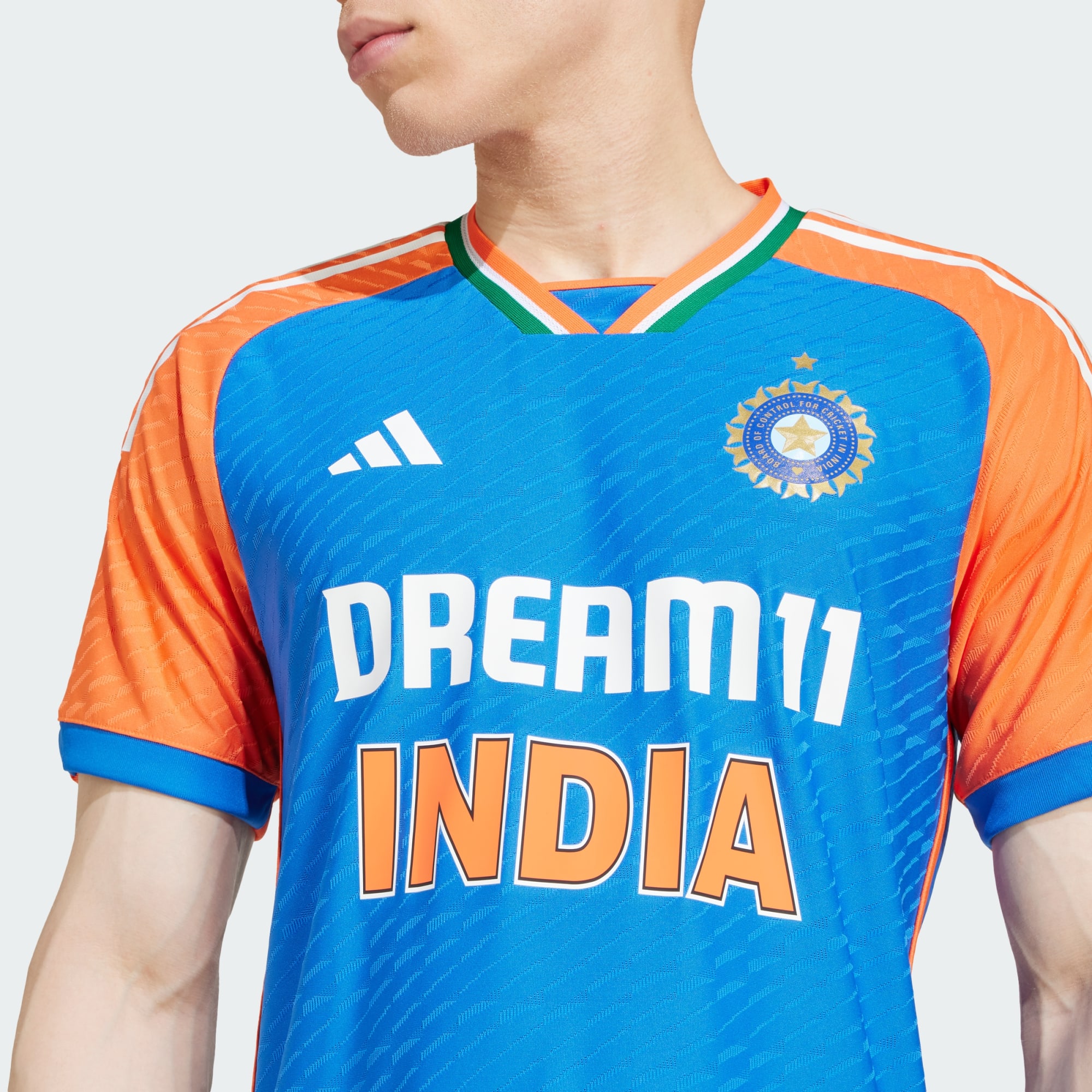 Representera laget i denna India-tröja. adidas-tröjan som spelarna bär under blixtsnabba Twenty20 International-cricketmatcher, gjord i mjukt jacquardmaterial för en skön känsla som varar hela matchen. Ett lagemblem fulländar looken och sticker ut mot de kända cricketfärgerna.