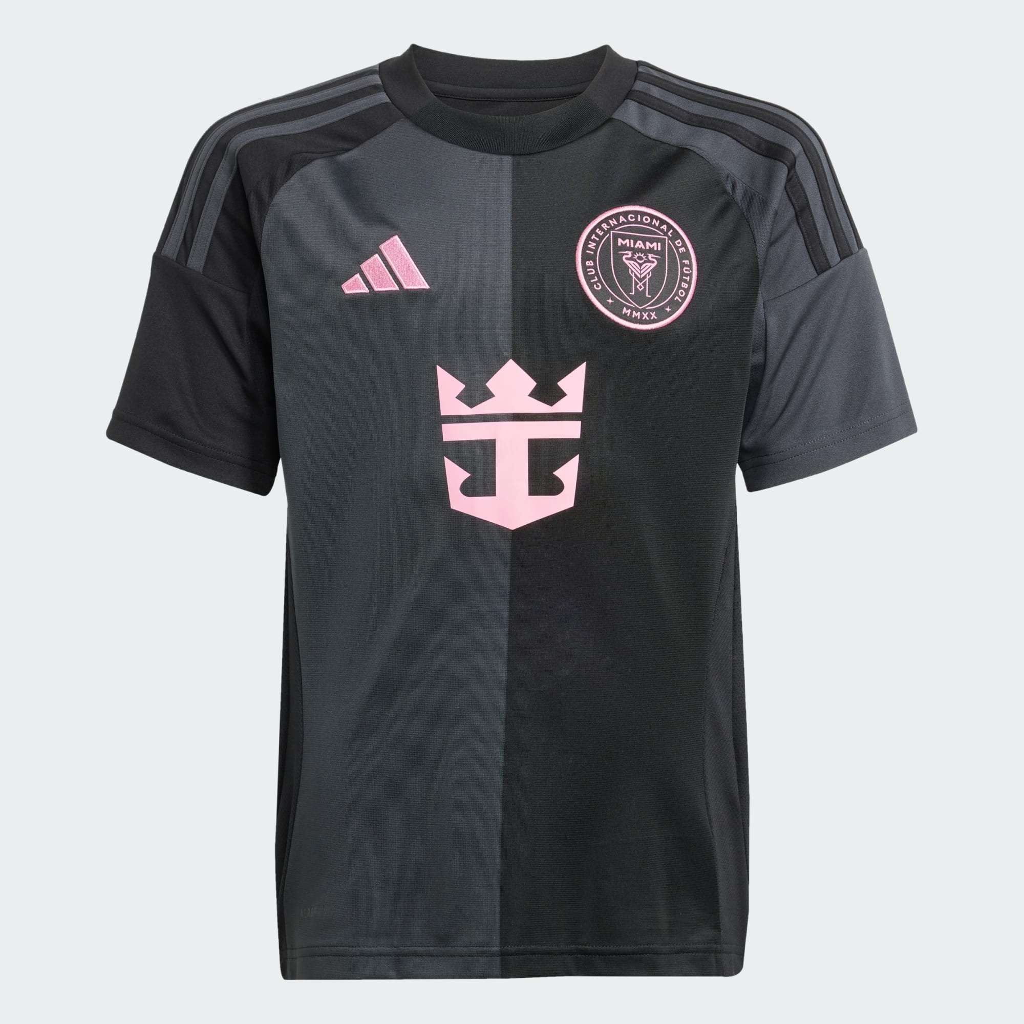Visa upp Miami-stil på arenan i den här Inter Miami CF-bortatröjan för juniorer. Med rosa detaljer som sticker ut mot en svart och mörkgrå bakgrund utstrålar den här supportertröjan sofistikerad stil. Fukthanterande AEROREADY och ett mjukt material erbjuder optimal komfort. Klubbnamnet och det påsydda emblemet visar att du uppskattar förstklassig fotboll. Den här produkten är tillverkad av 100 % återvunna material. Genom att återanvända material bidrar vi till minskat avfall och till att minska beroendet av ändliga resurser samt till att reducera miljöavtrycket från våra produkter.