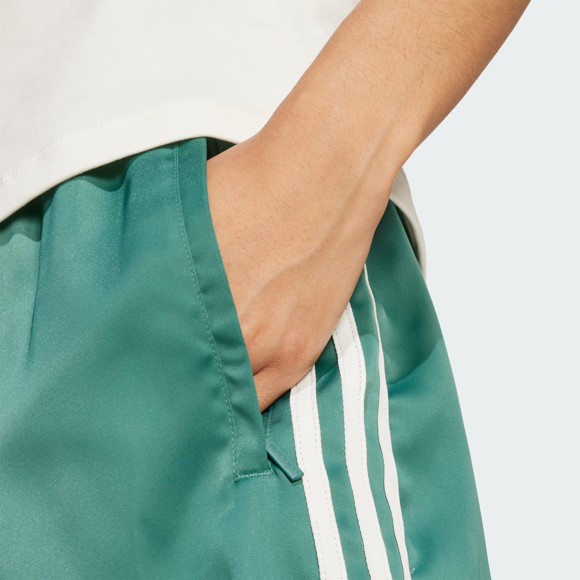 Oavsett om du hejar på Italiens damlag eller bara visar upp dina fotbollsfärger, ger de här adidasshortsen en vinnande kombination av komfort och elegans. Det smidiga satinmaterialet pryds av gröna färger som kompletterar lagets bortaställ. Lagemblemet och Trefoil-loggan fulländar den iögonfallande looken.